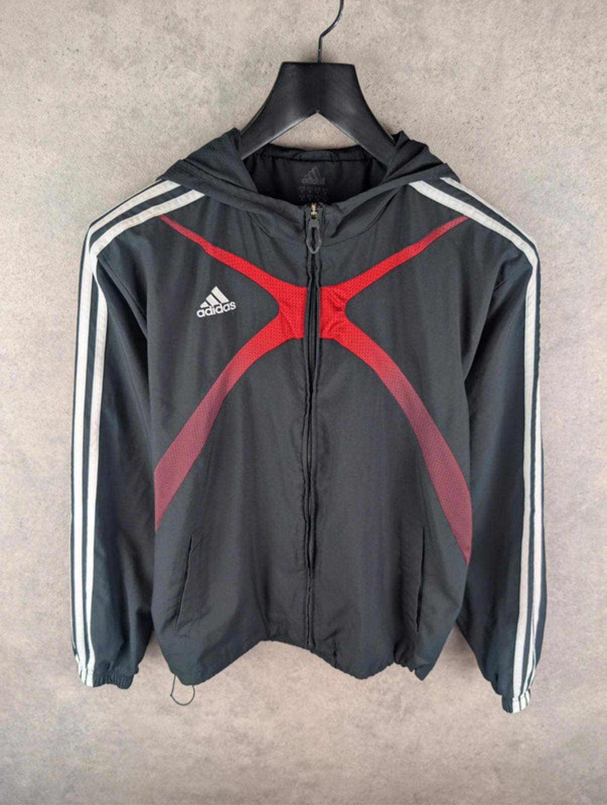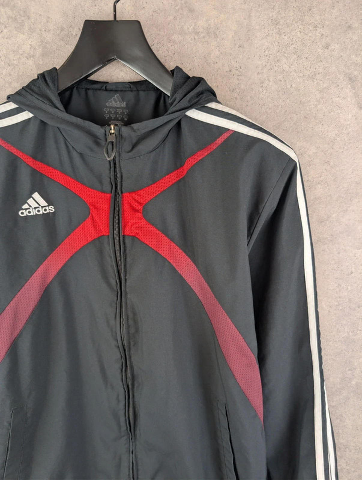 Adidas Jacket Mens M Medium Black Y2K Hooded Full Zip