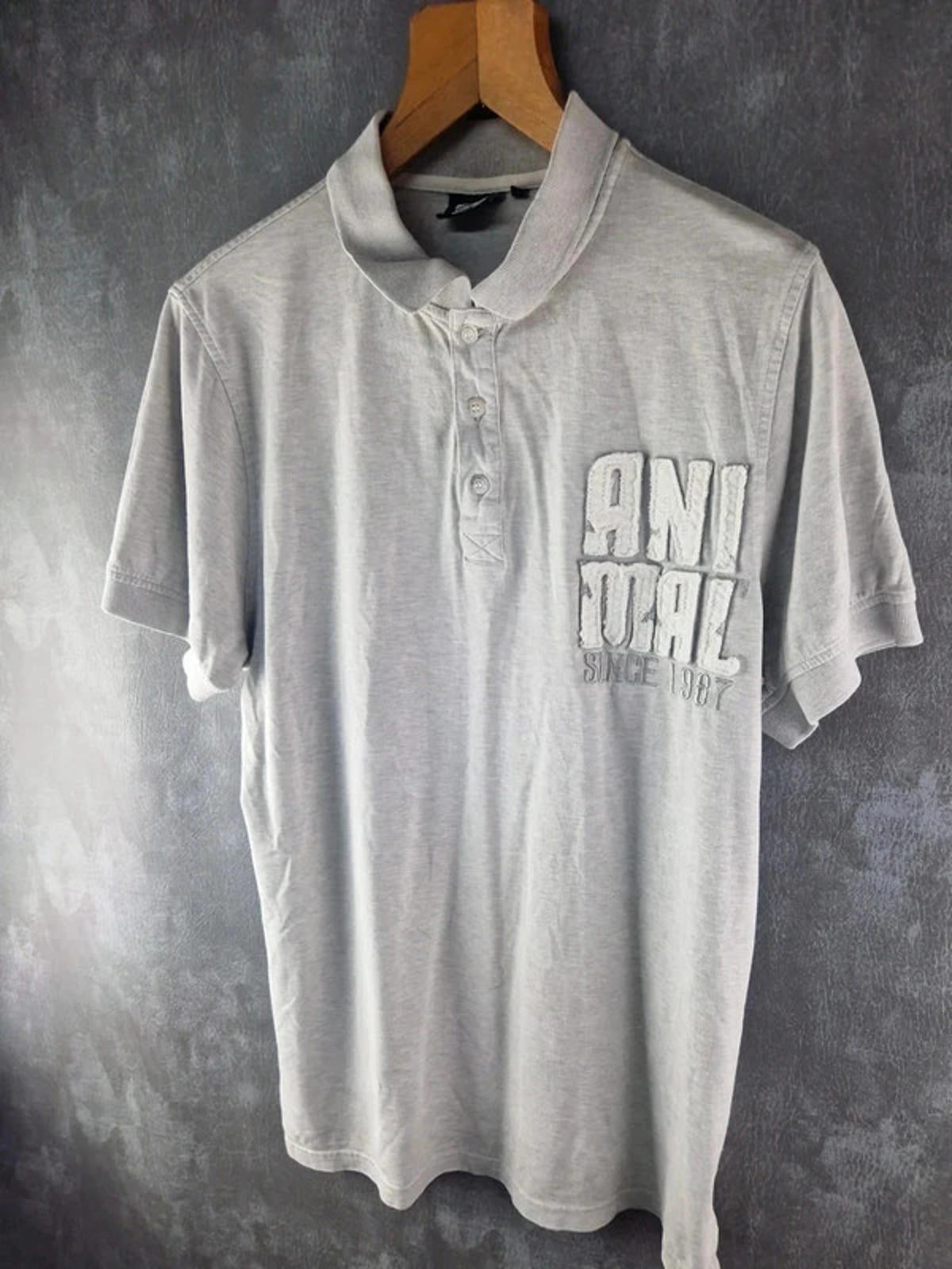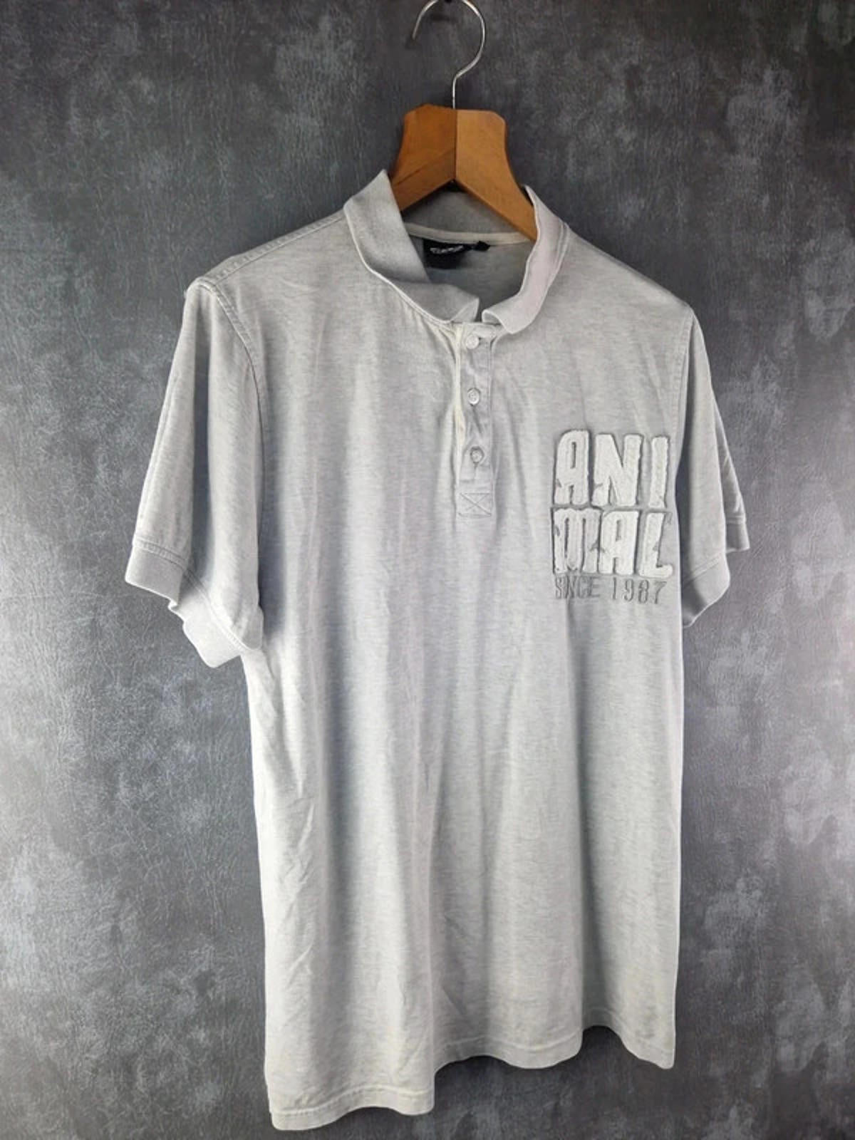 Animal Polo Shirt Mens Medium M Grey Y2K Short Sleeve