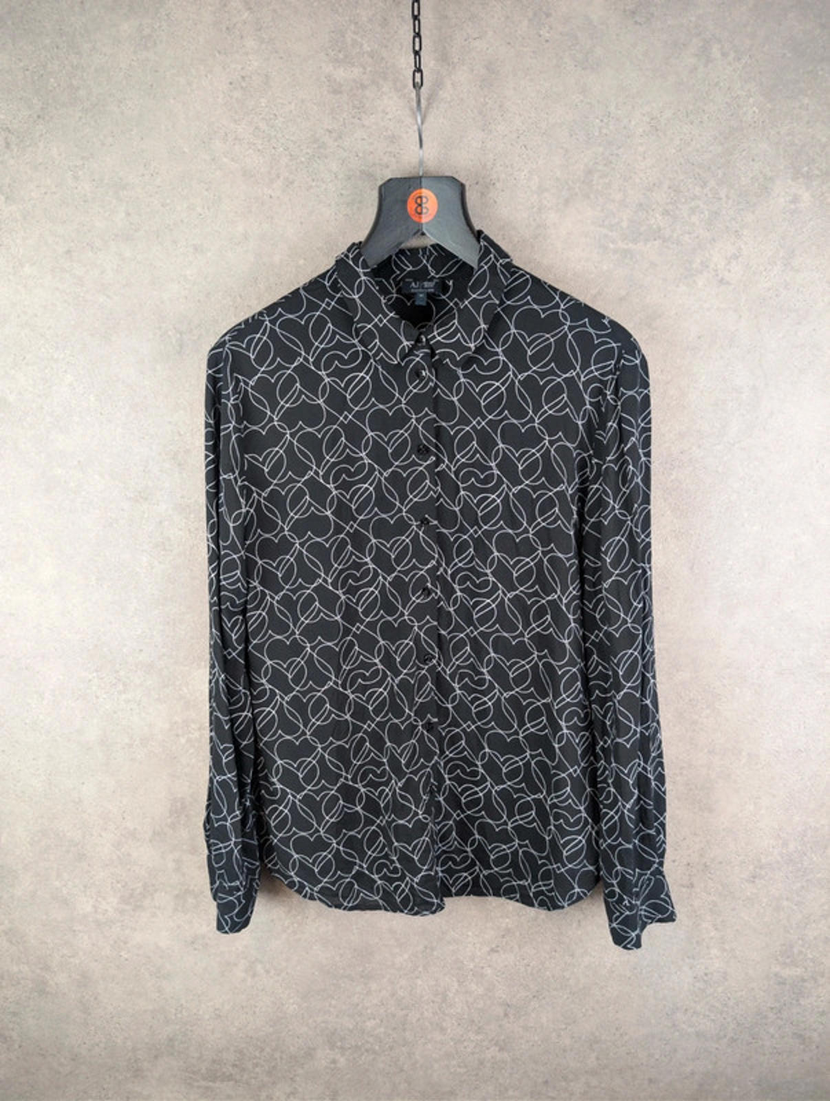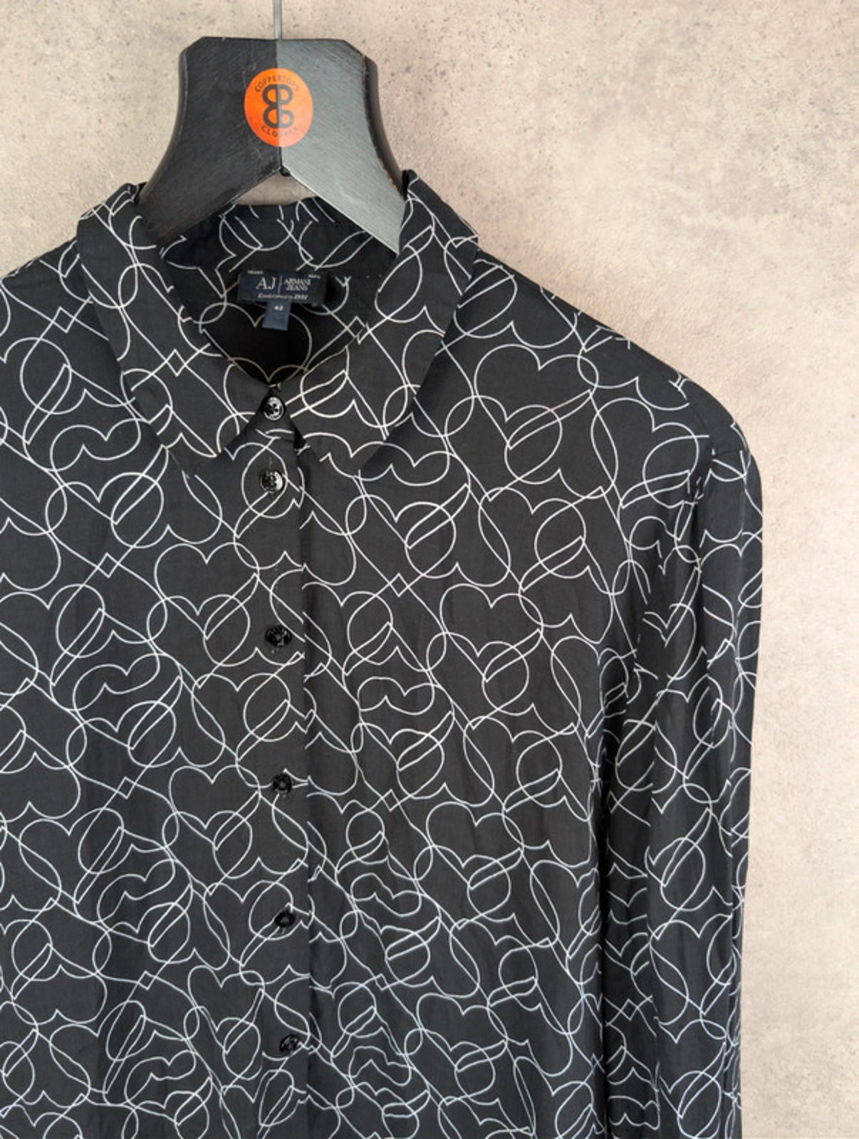 Increase quantity for Armani Shirt Womens Large L Black Blouse Hearts