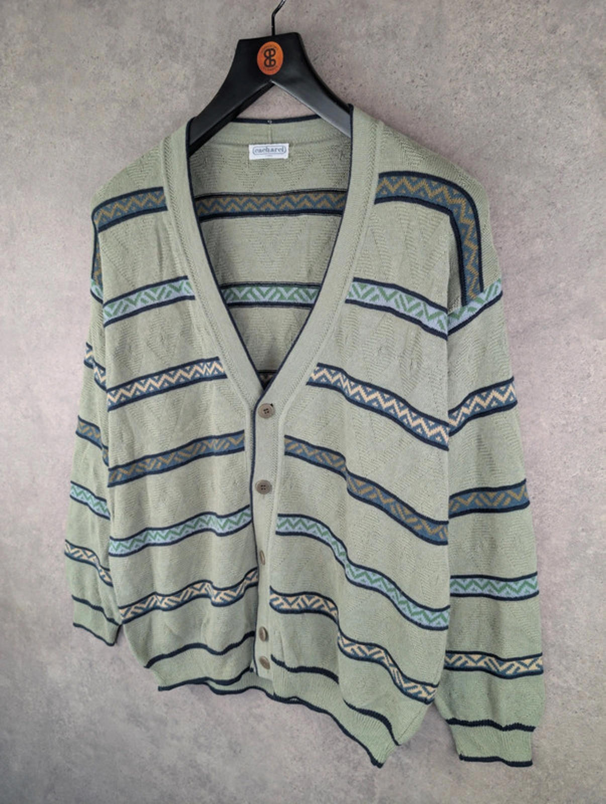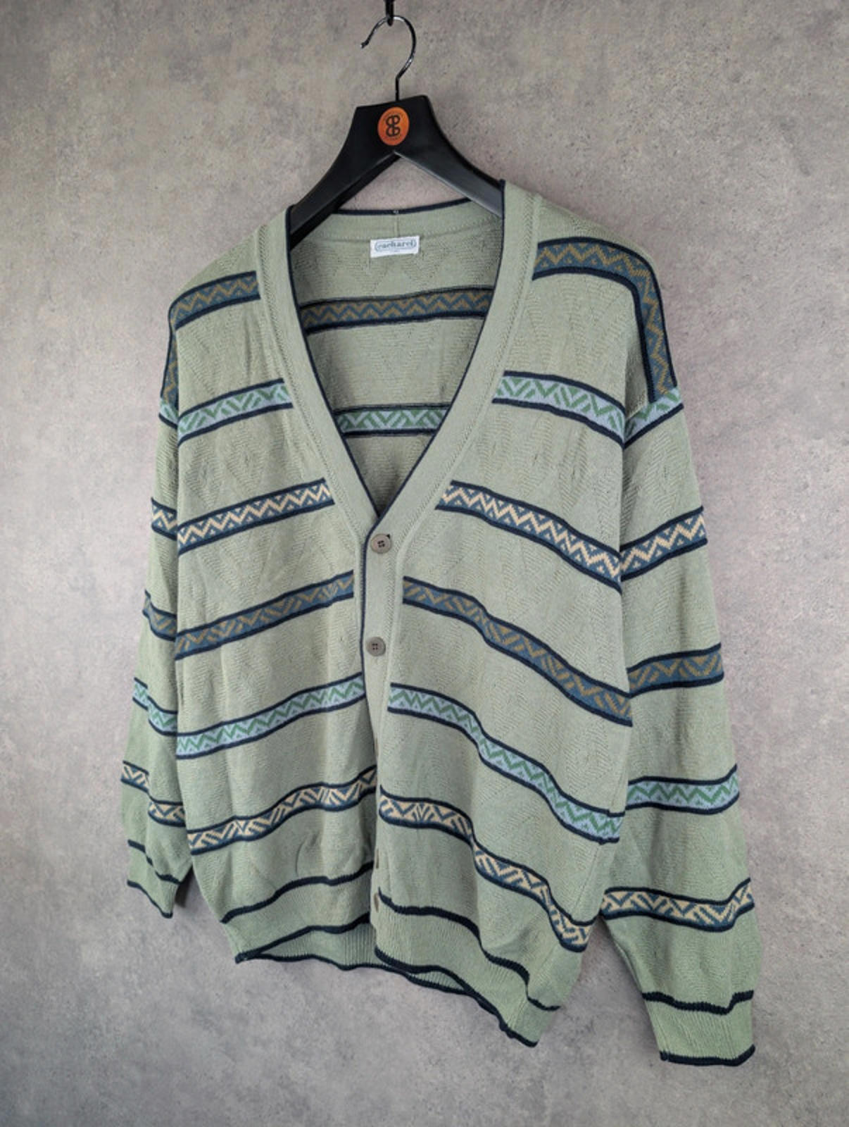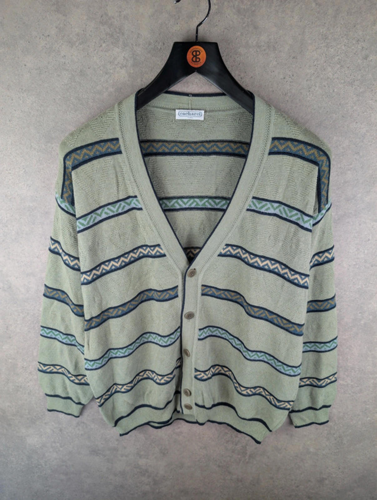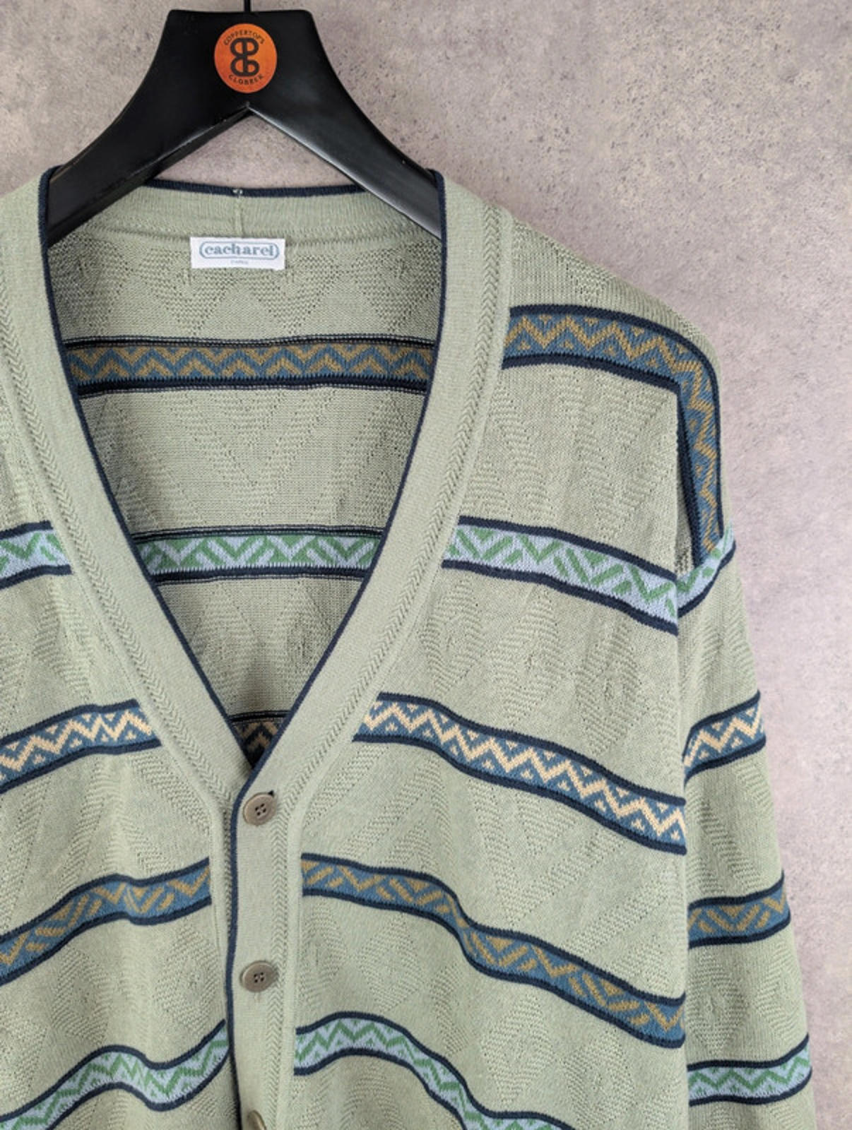 Cacharel Jumper Mens XL Extra Large Green Vintage Cardigan Cotton Linen Italy