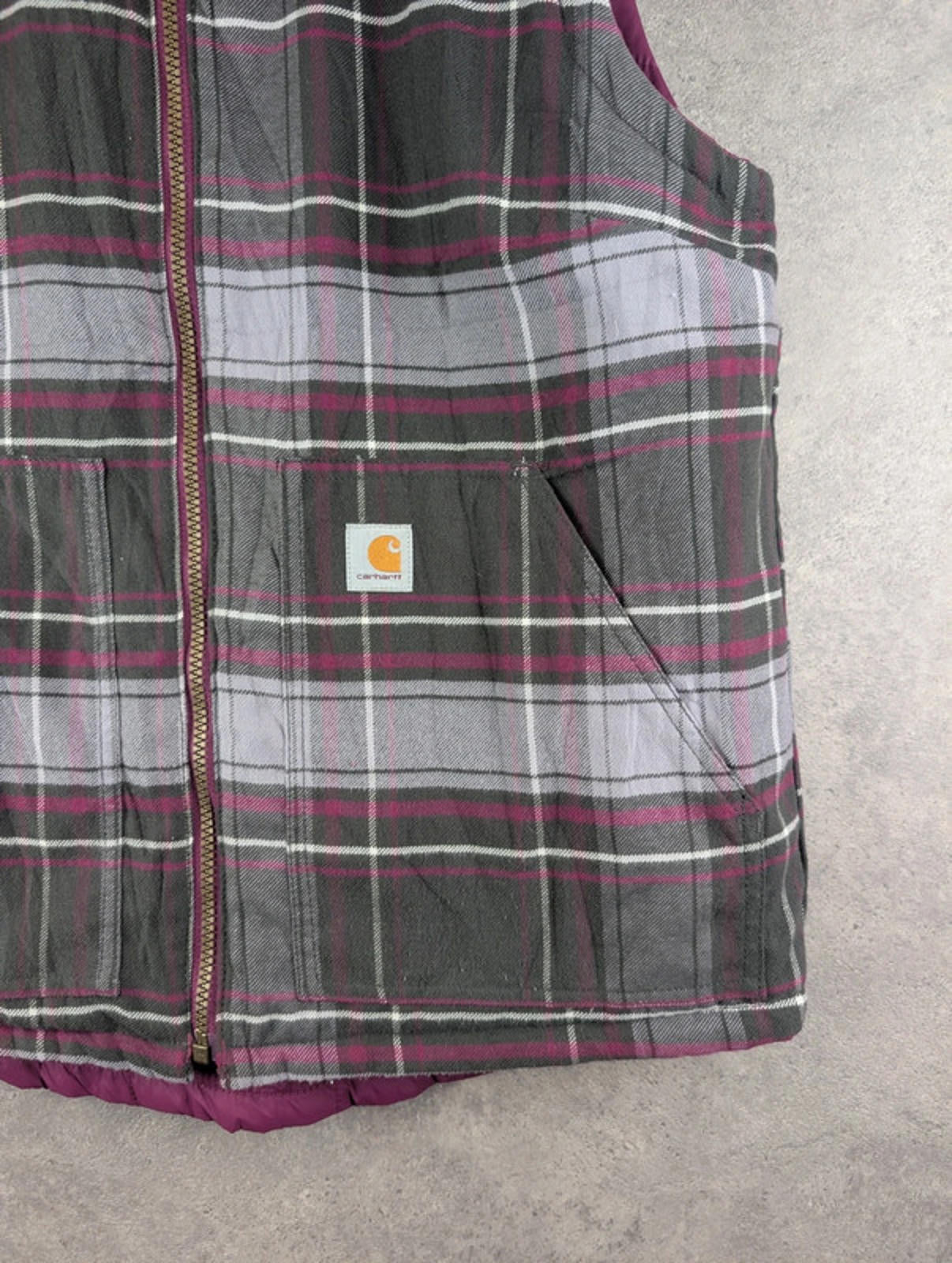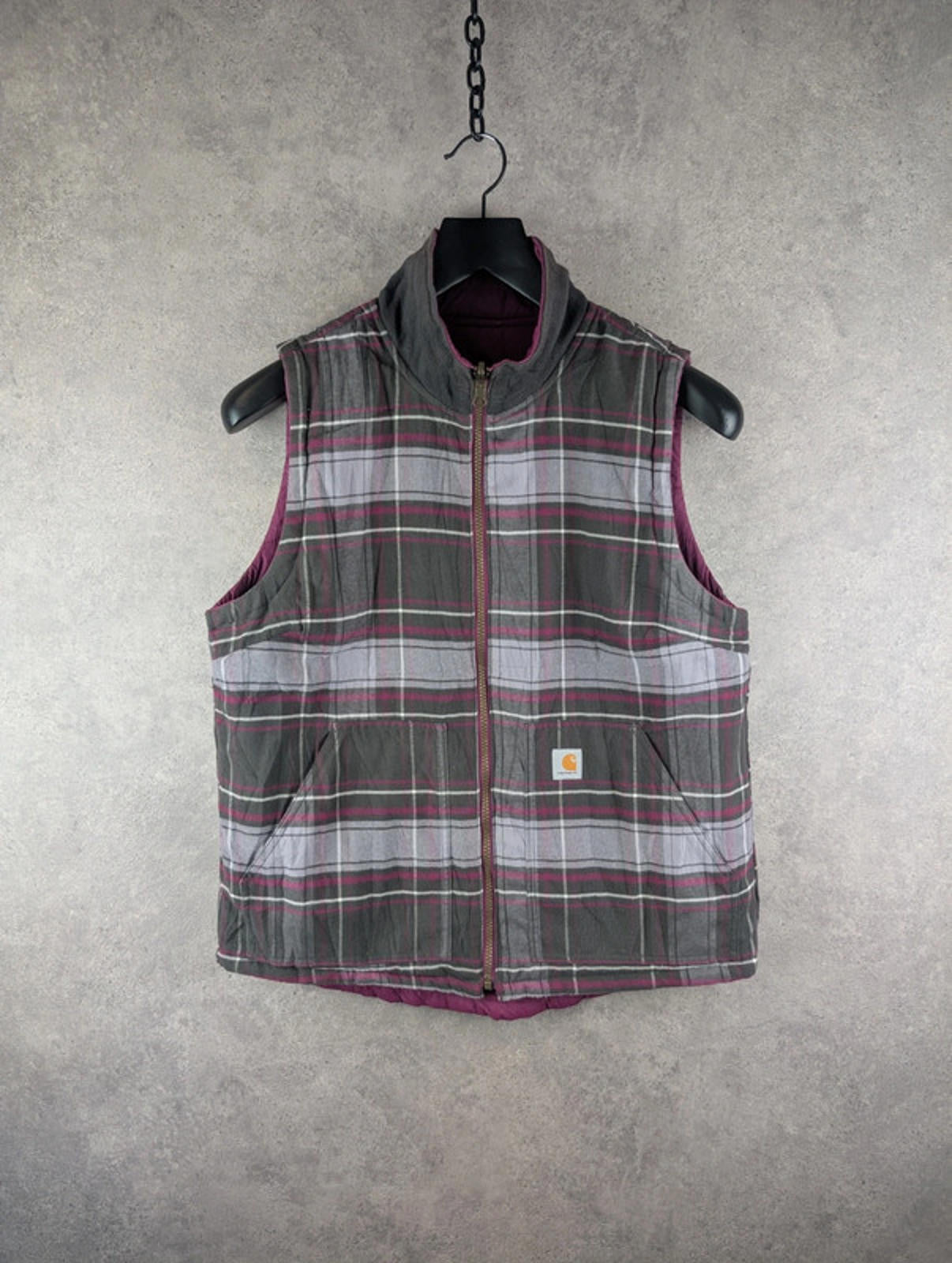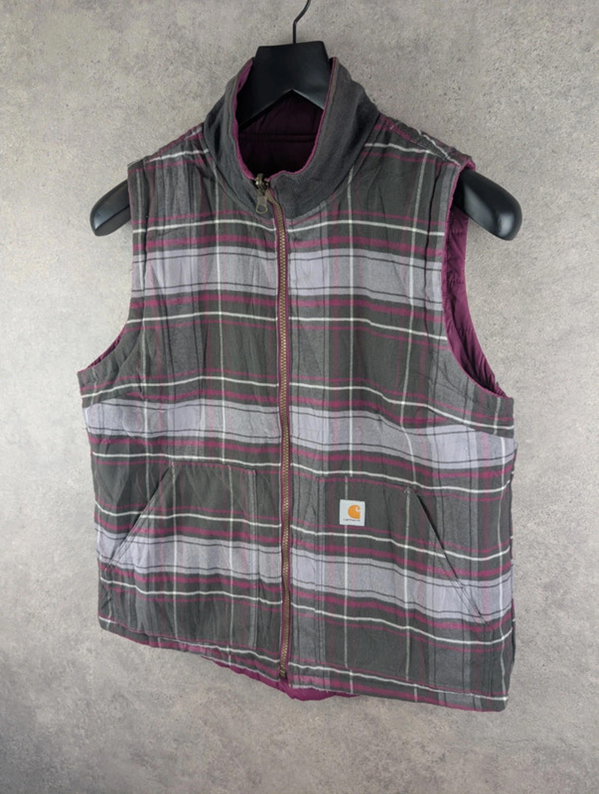 Carhartt Jacket Womens Large L Gilet Reversible Checked Workwear Gardening