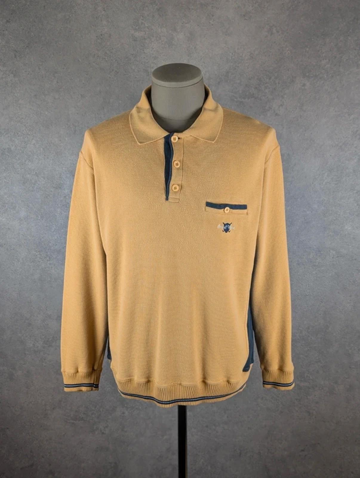 Casual Club Jumper Men’s Large Beige Tan Vintage 90s Collared Knit Pullover