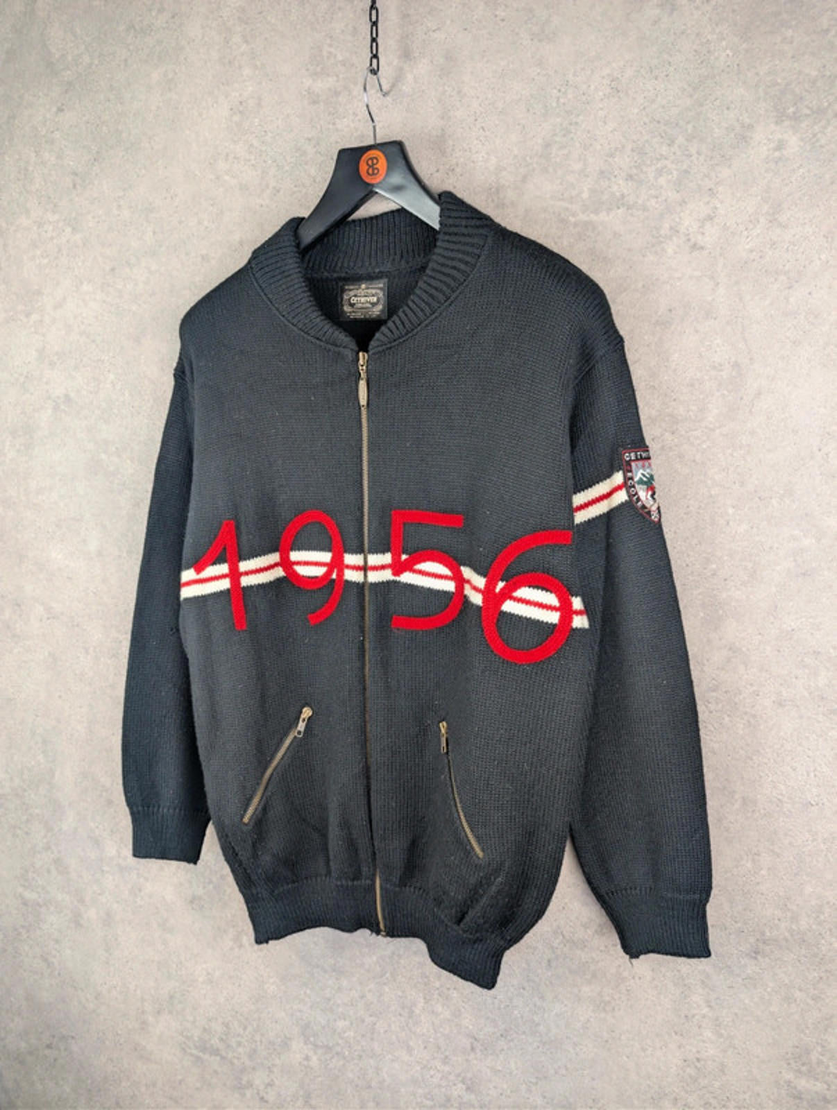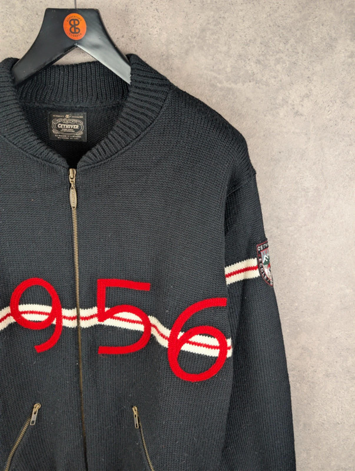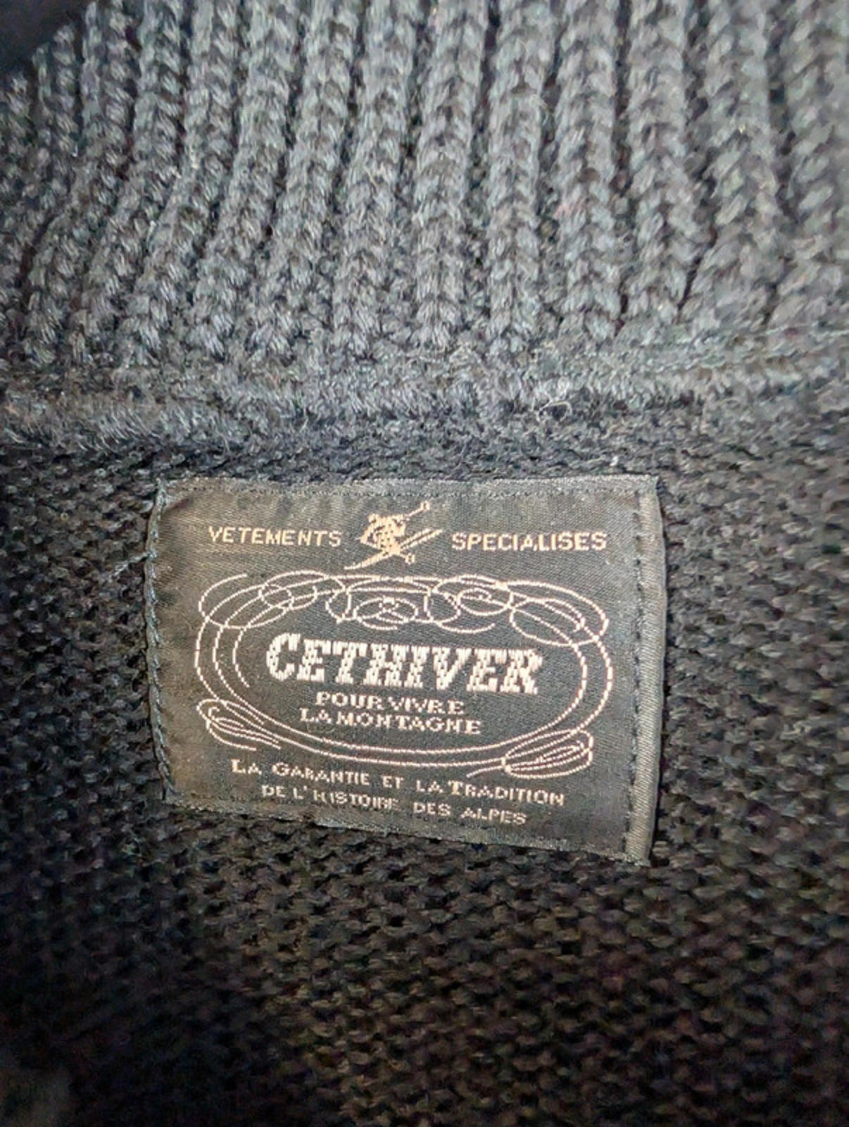 Cethiver Jumper Mens L Large Black Knitted Embroidered Vintage 1980s