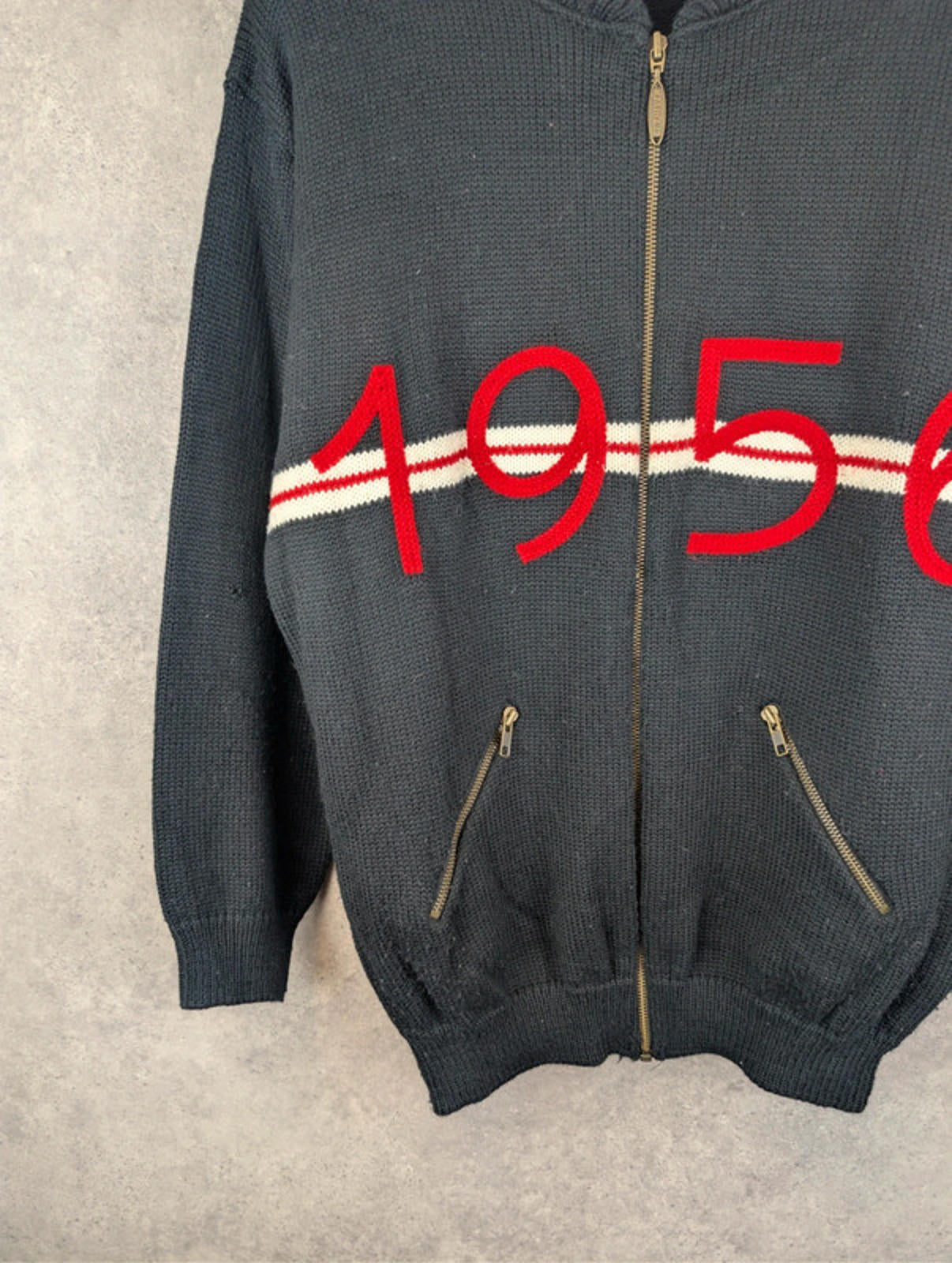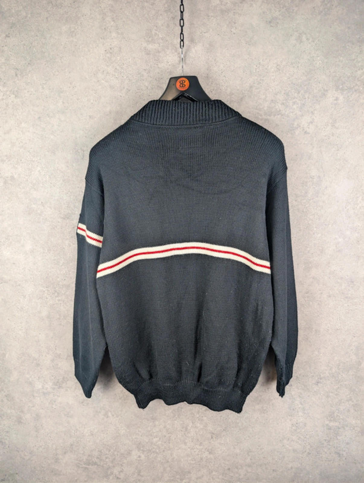 Decrease quantity for Cethiver Jumper Mens L Large Black Knitted Embroidered Vintage 1980s