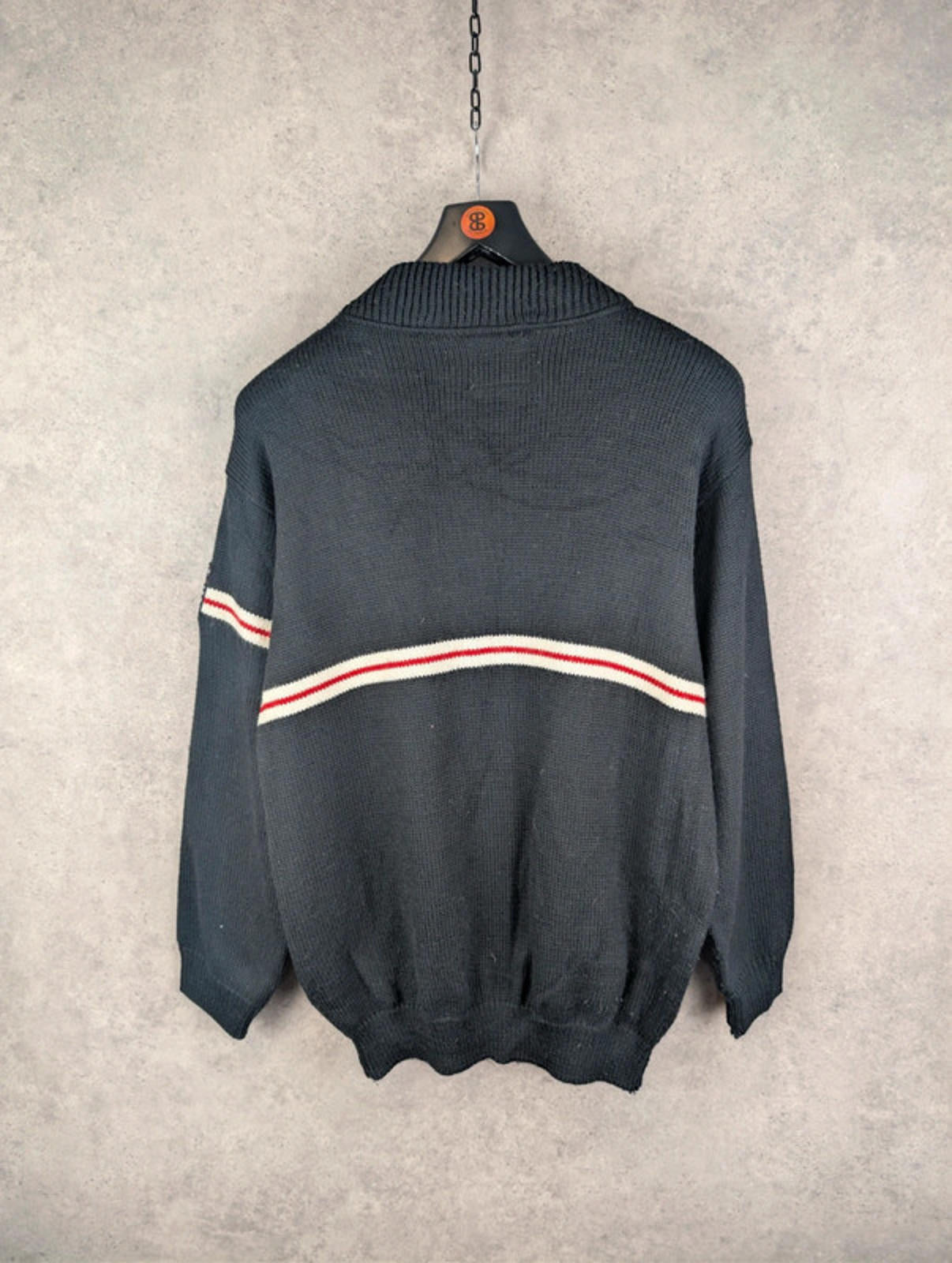 Increase quantity for Cethiver Jumper Mens L Large Black Knitted Embroidered Vintage 1980s