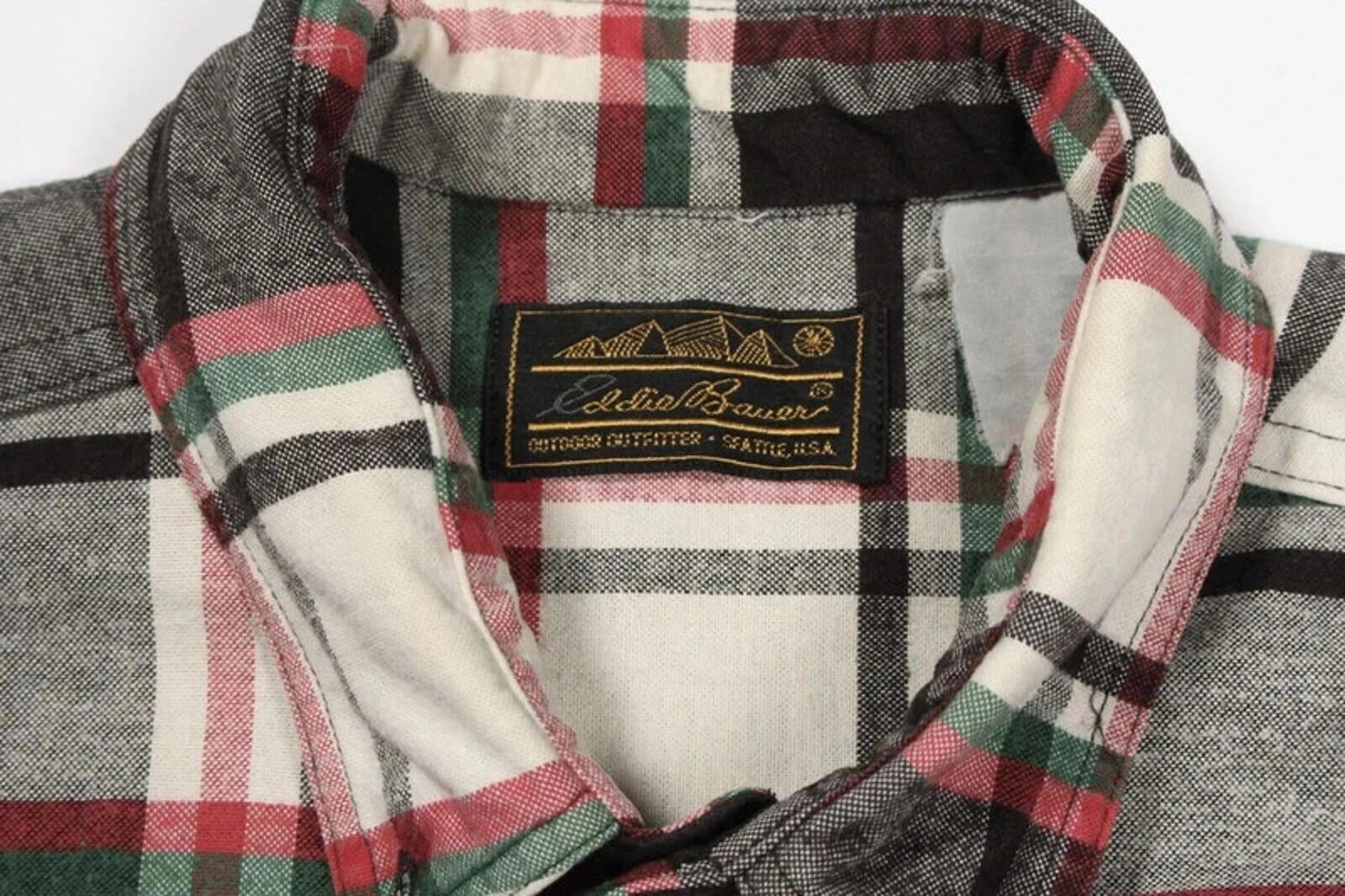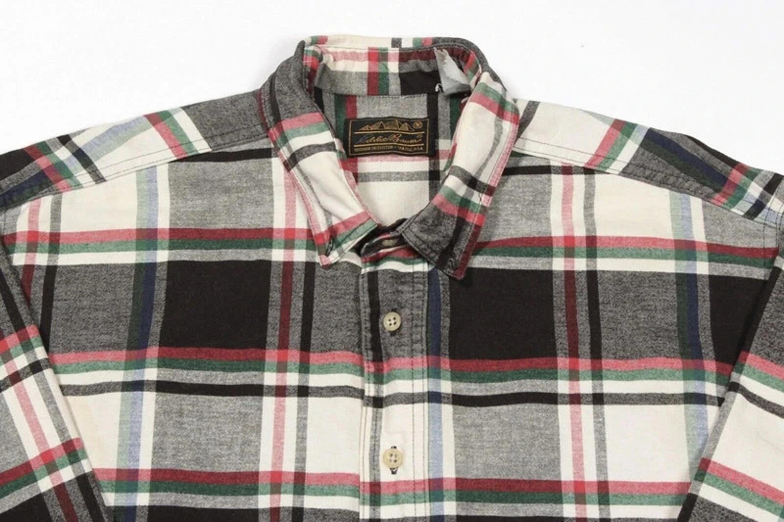 Eddie Bauer Flannel Shirt Button Down Mens S Small Check Plaid Retro