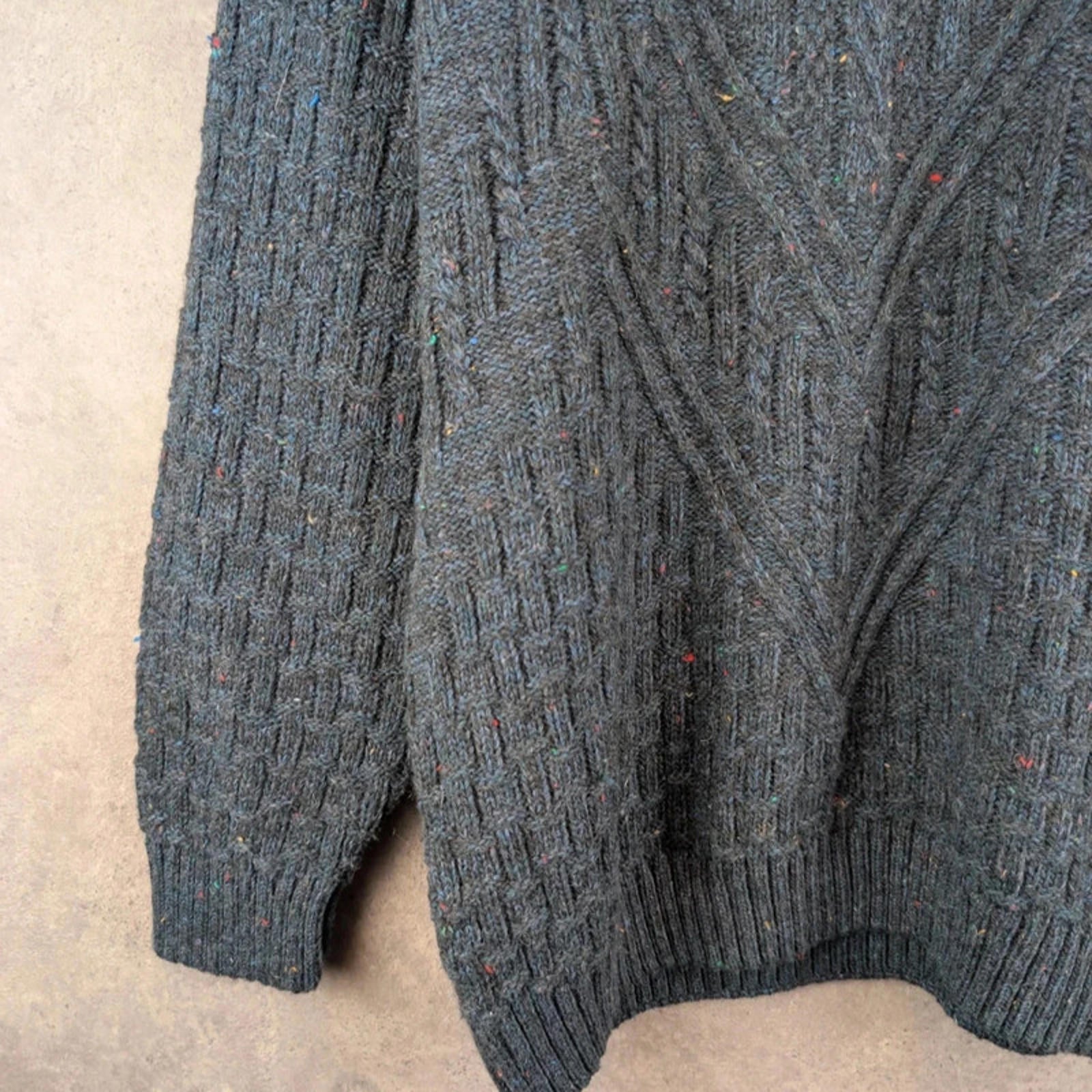 Decrease quantity for Finnegan Jumper Mens L Large Grey Knitted Vintage Pullover