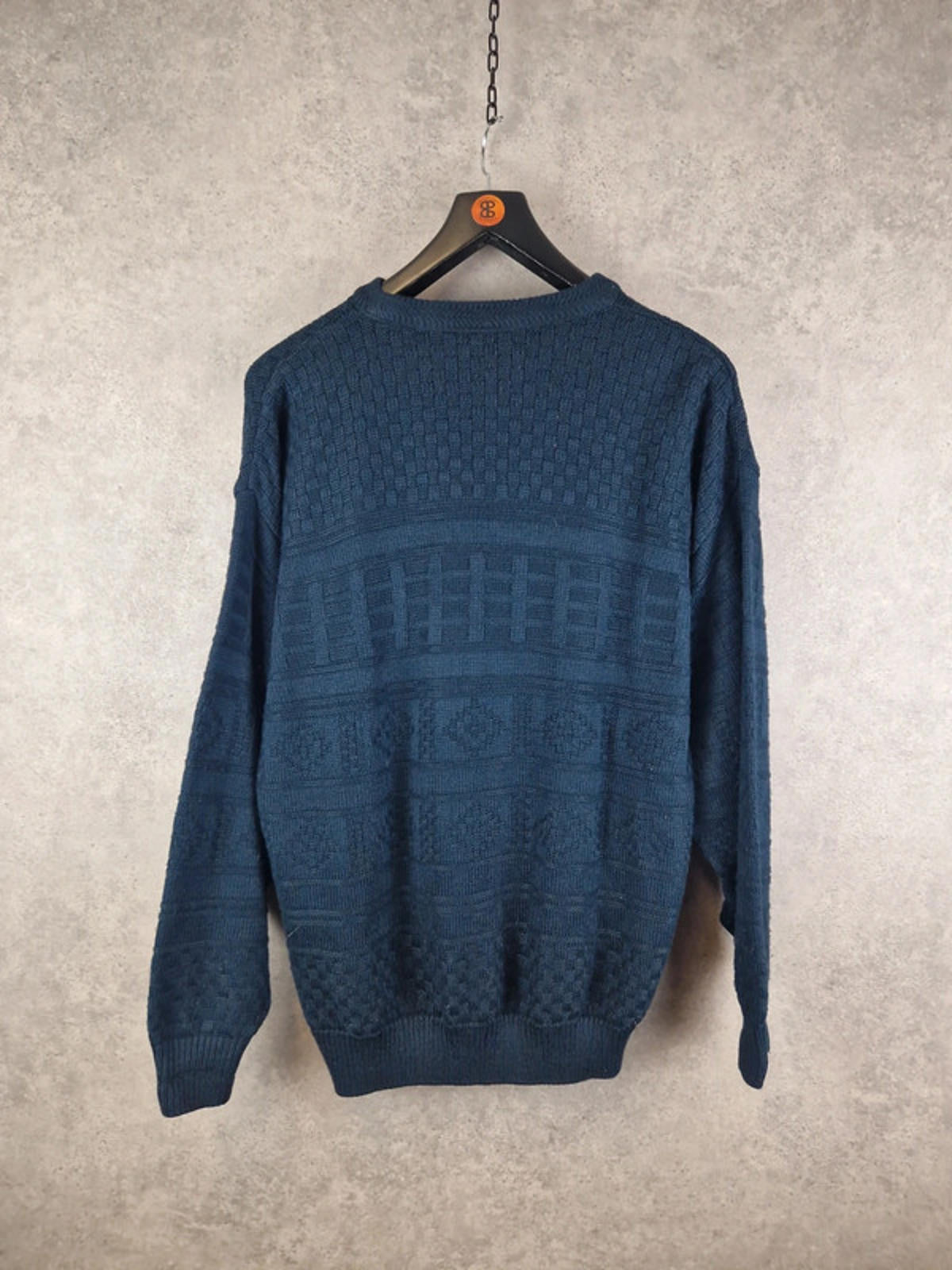 Increase quantity for First Class Jumper Mens Medium Blue Crew Neck Aran Pullover Fisherman Sweater