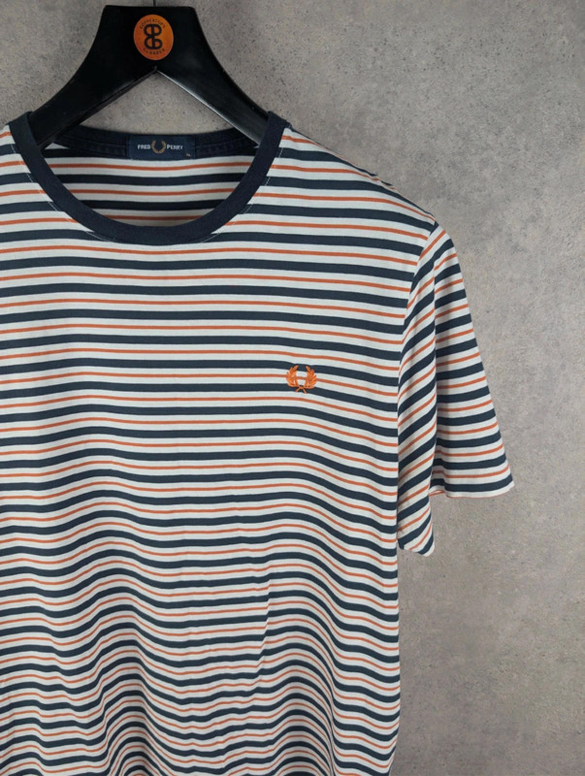 Fred Perry T-Shirt Mens XL Extra Large Stripped Short Sleeve
