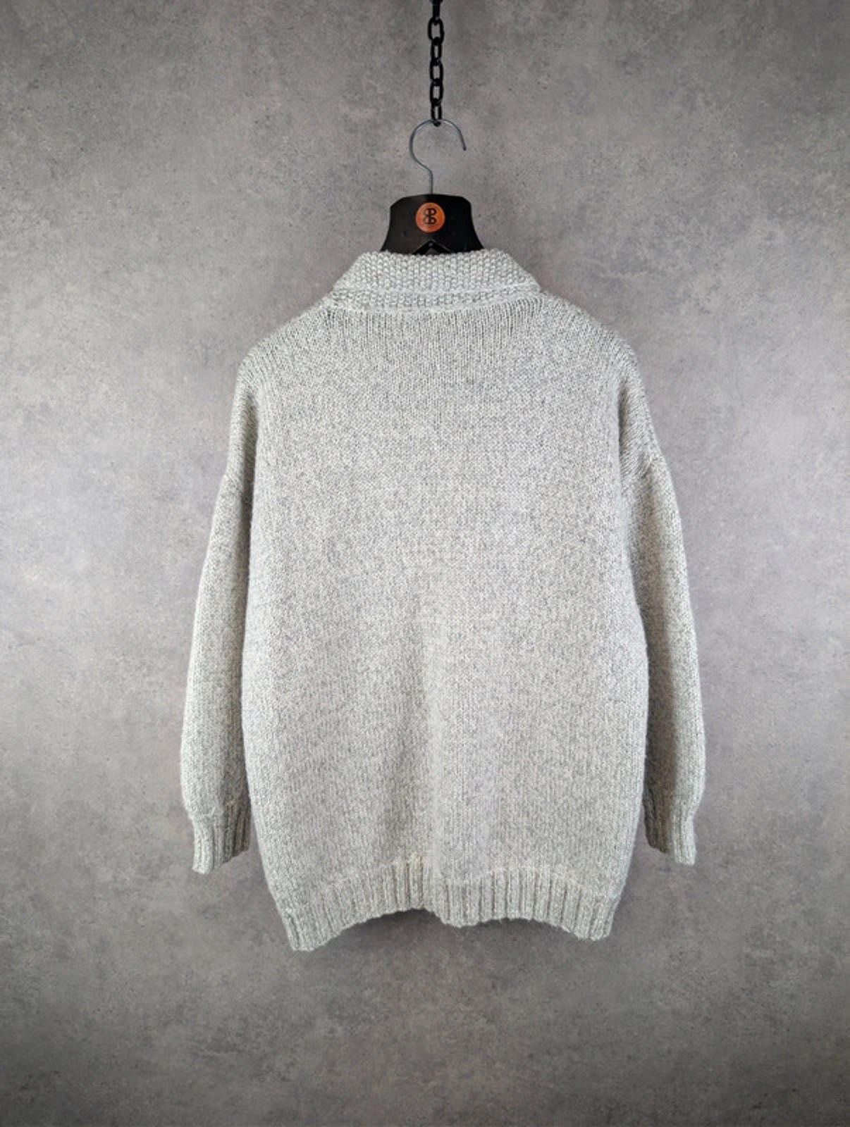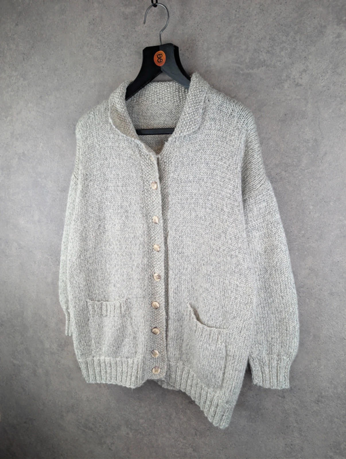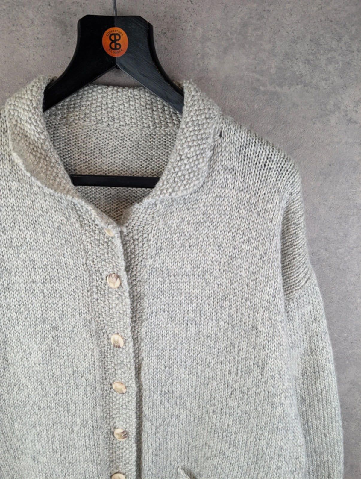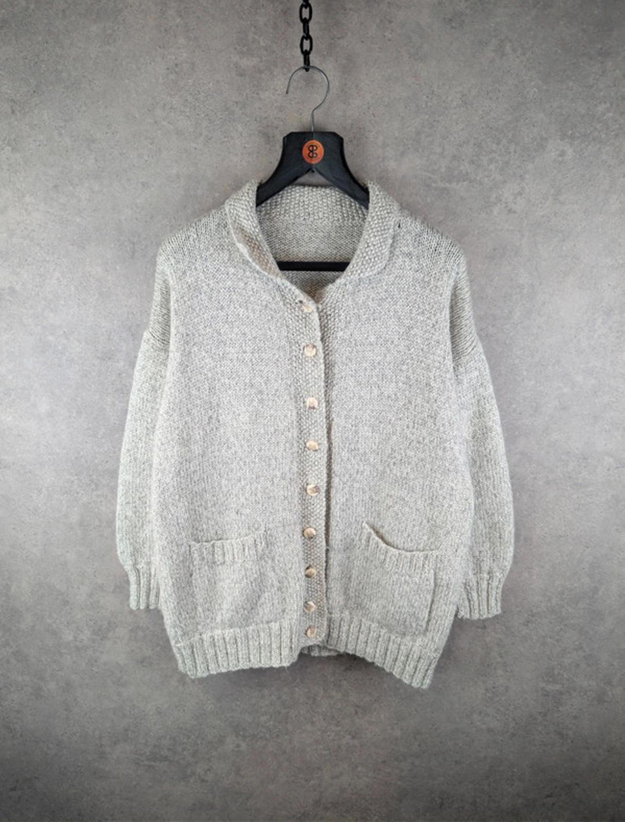 Decrease quantity for Hand Knitted Cardigan Womens L Large Grey Cotton