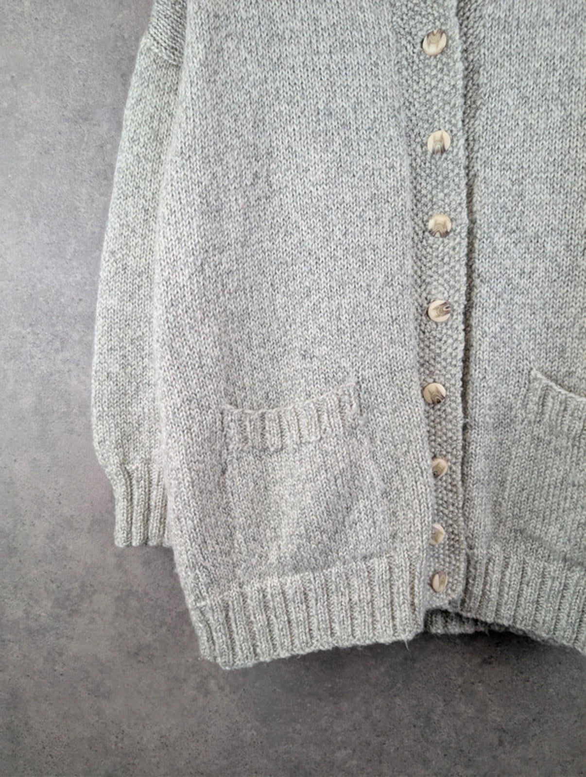 Increase quantity for Hand Knitted Cardigan Womens L Large Grey Cotton