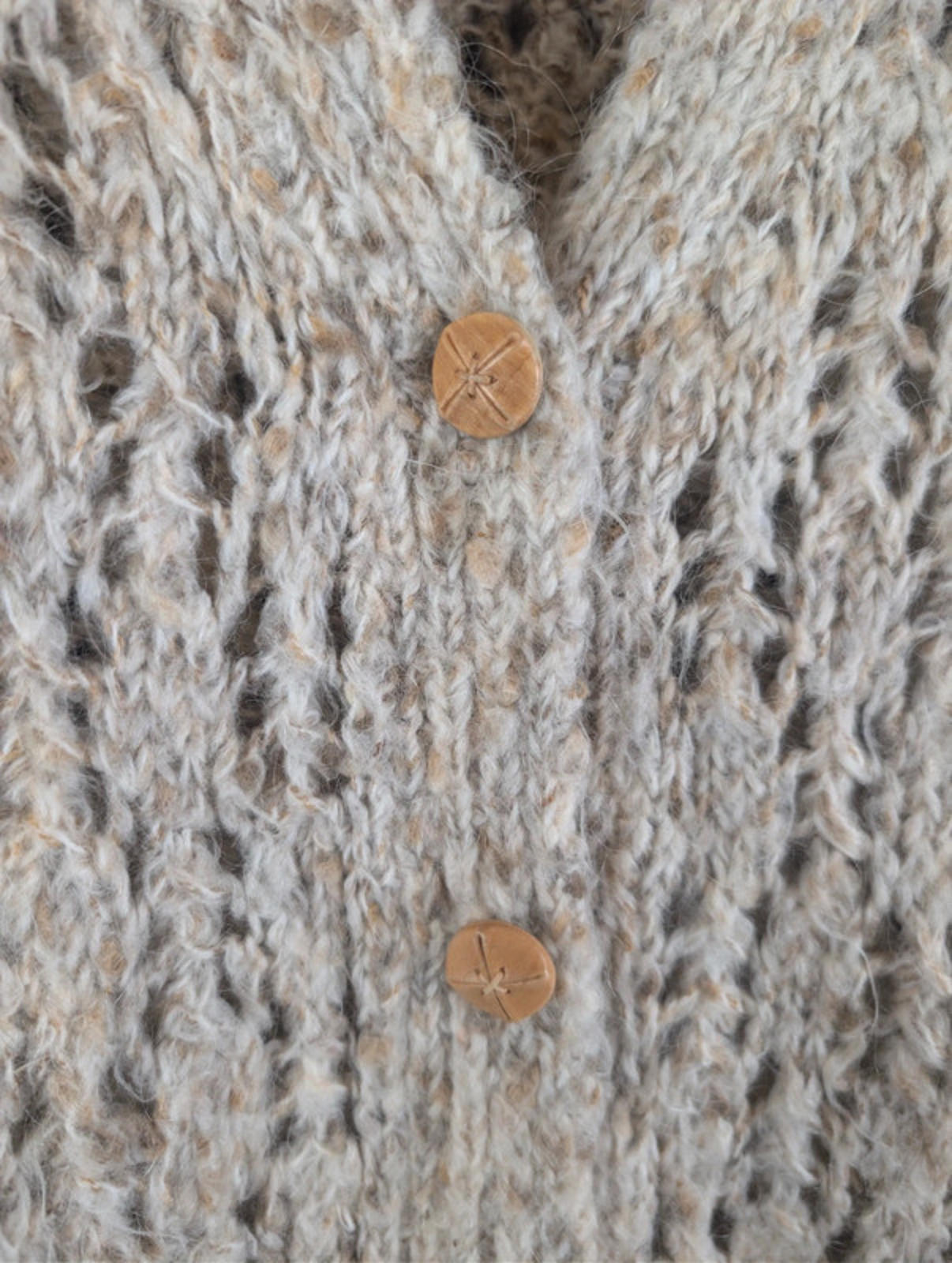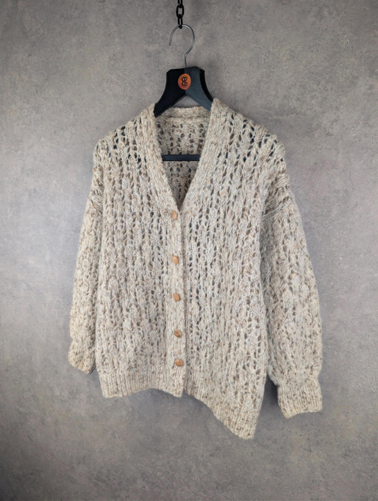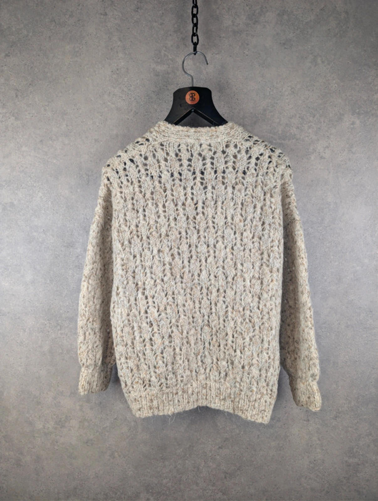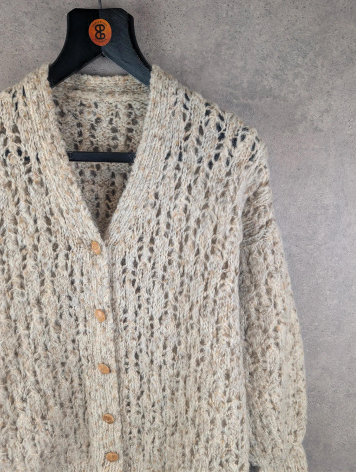 Increase quantity for Hand Knitted Cardigan Womens Medium M Beige