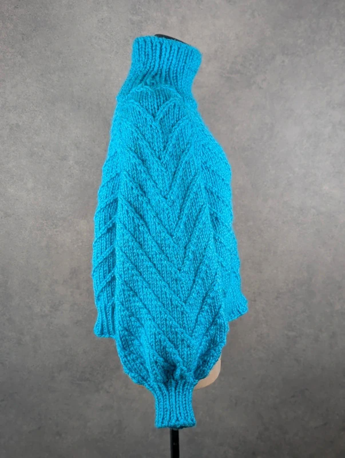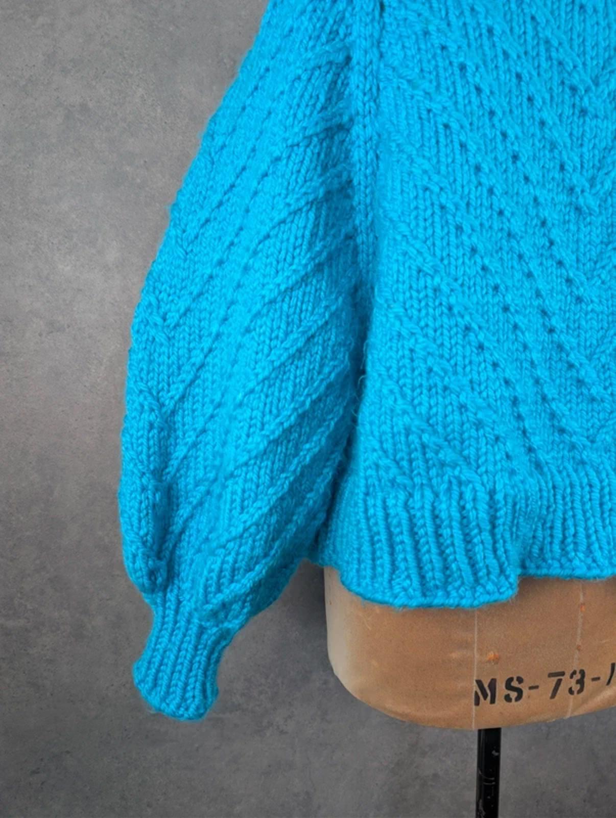 Hand Knitted Chunky Knit High Neck Jumper Women’s Medium Oversized Blue