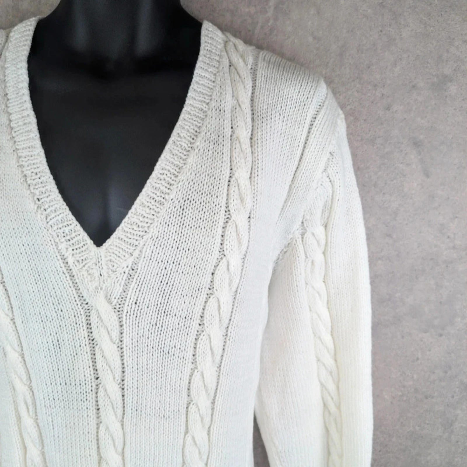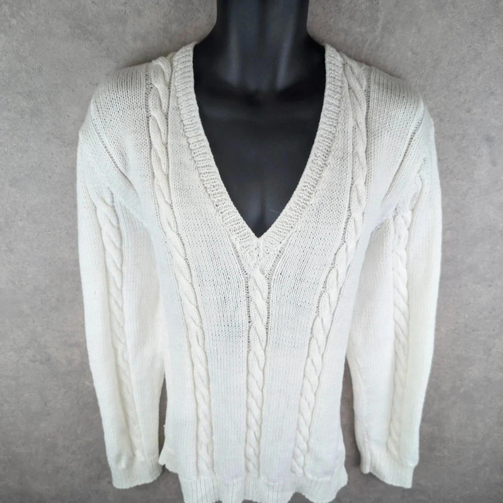 Increase quantity for Hand Knitted Jumper Mens Extra Large XL White Cricket Pullover