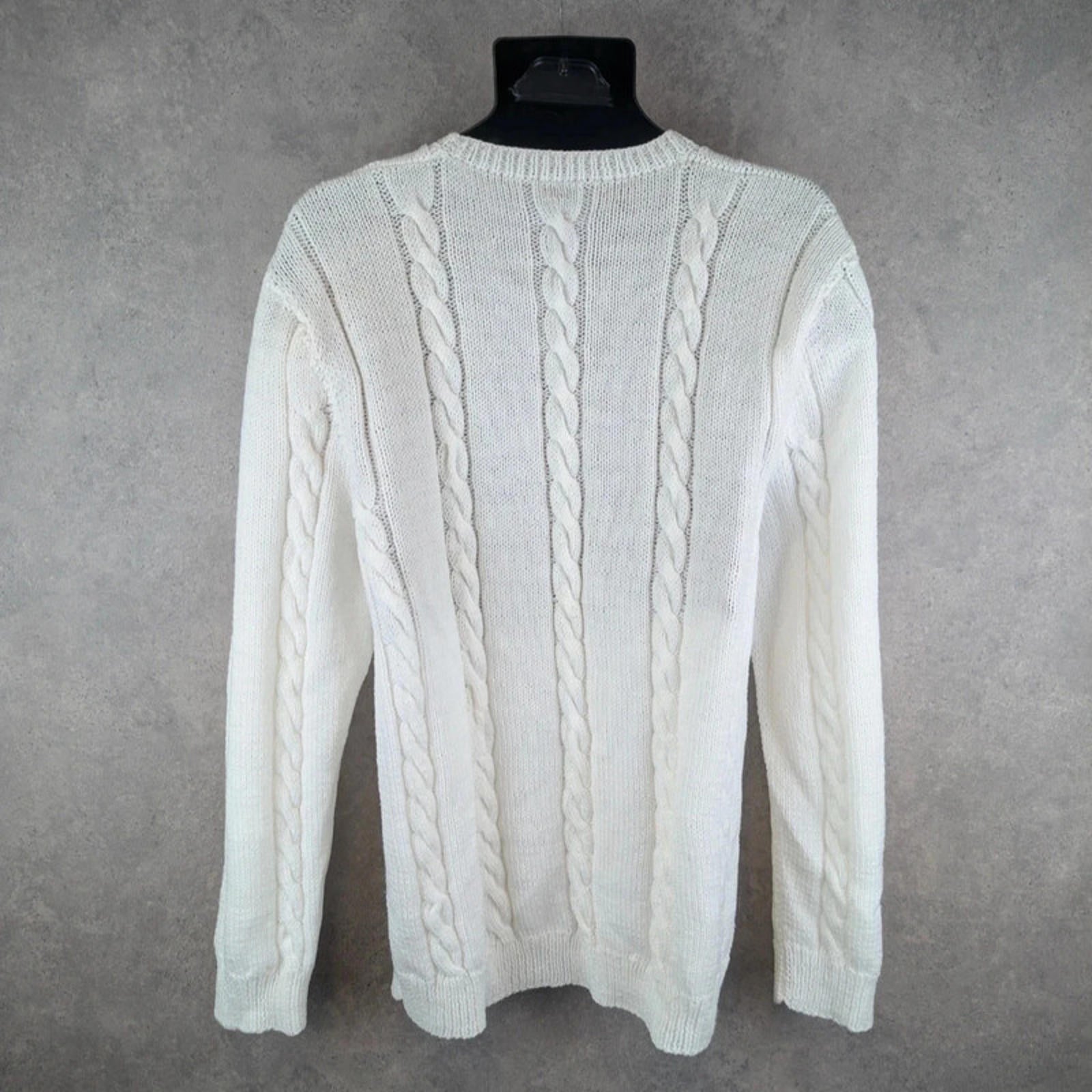 Decrease quantity for Hand Knitted Jumper Mens Extra Large XL White Cricket Pullover