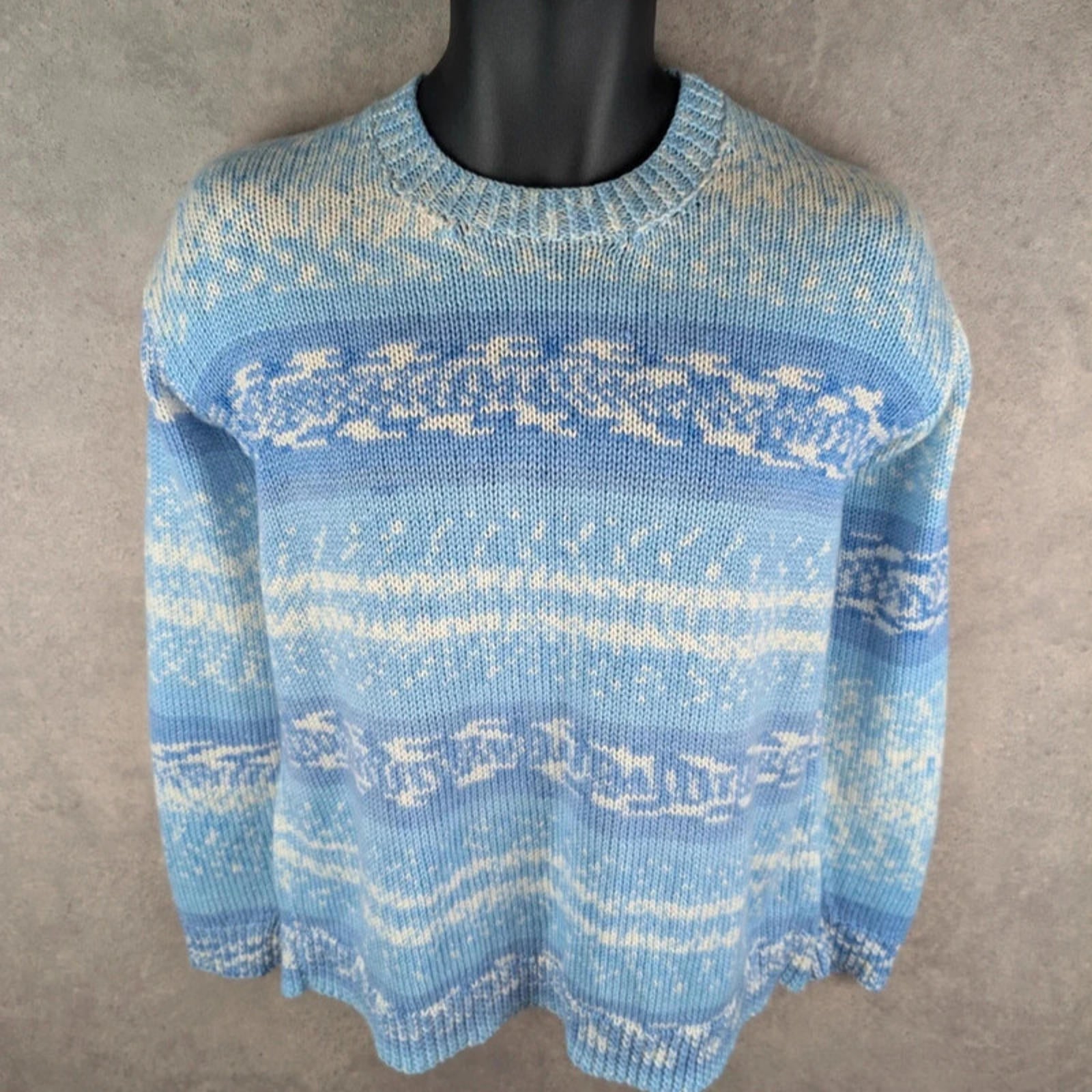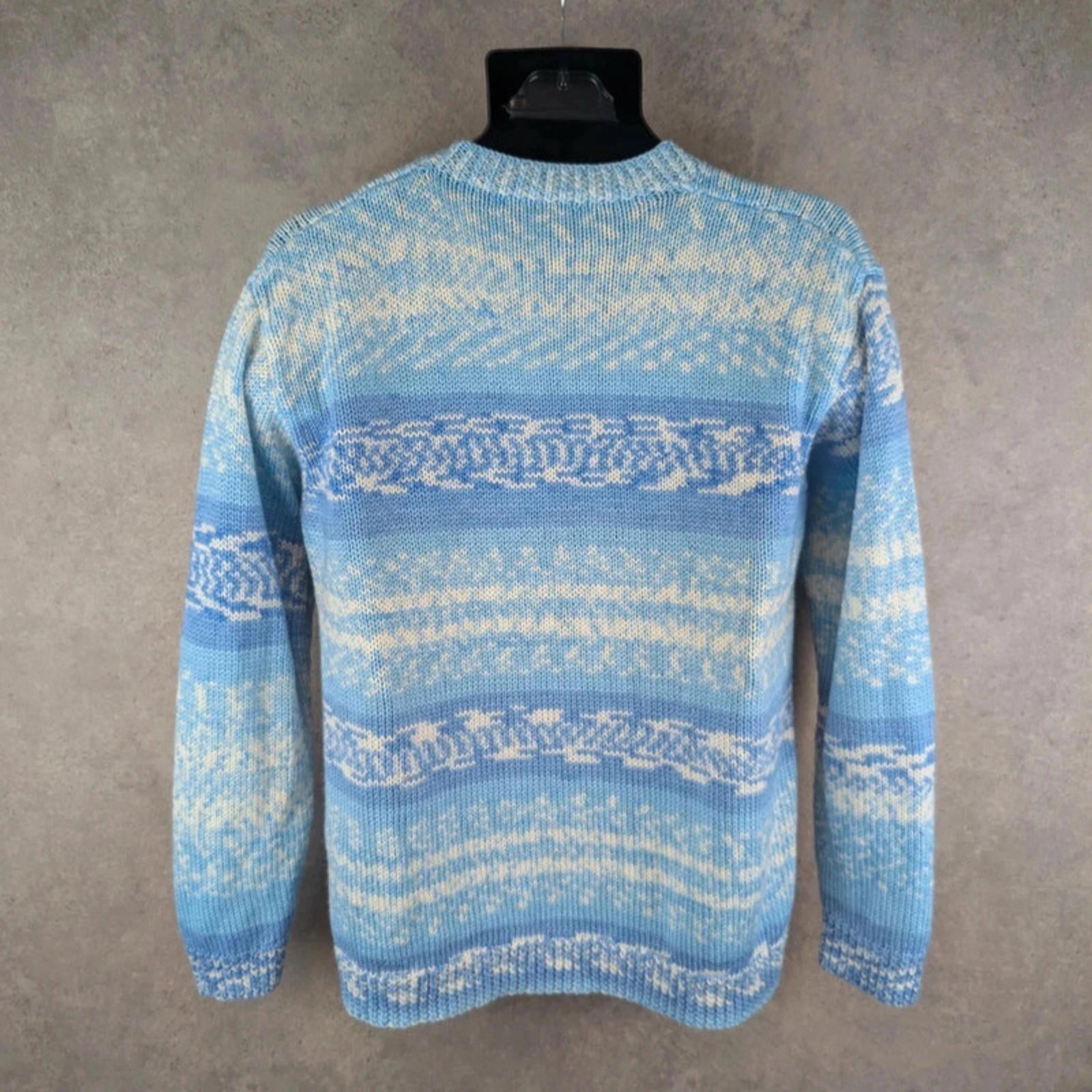 Hand Knitted Jumper Womens M Medium Blue Pullover