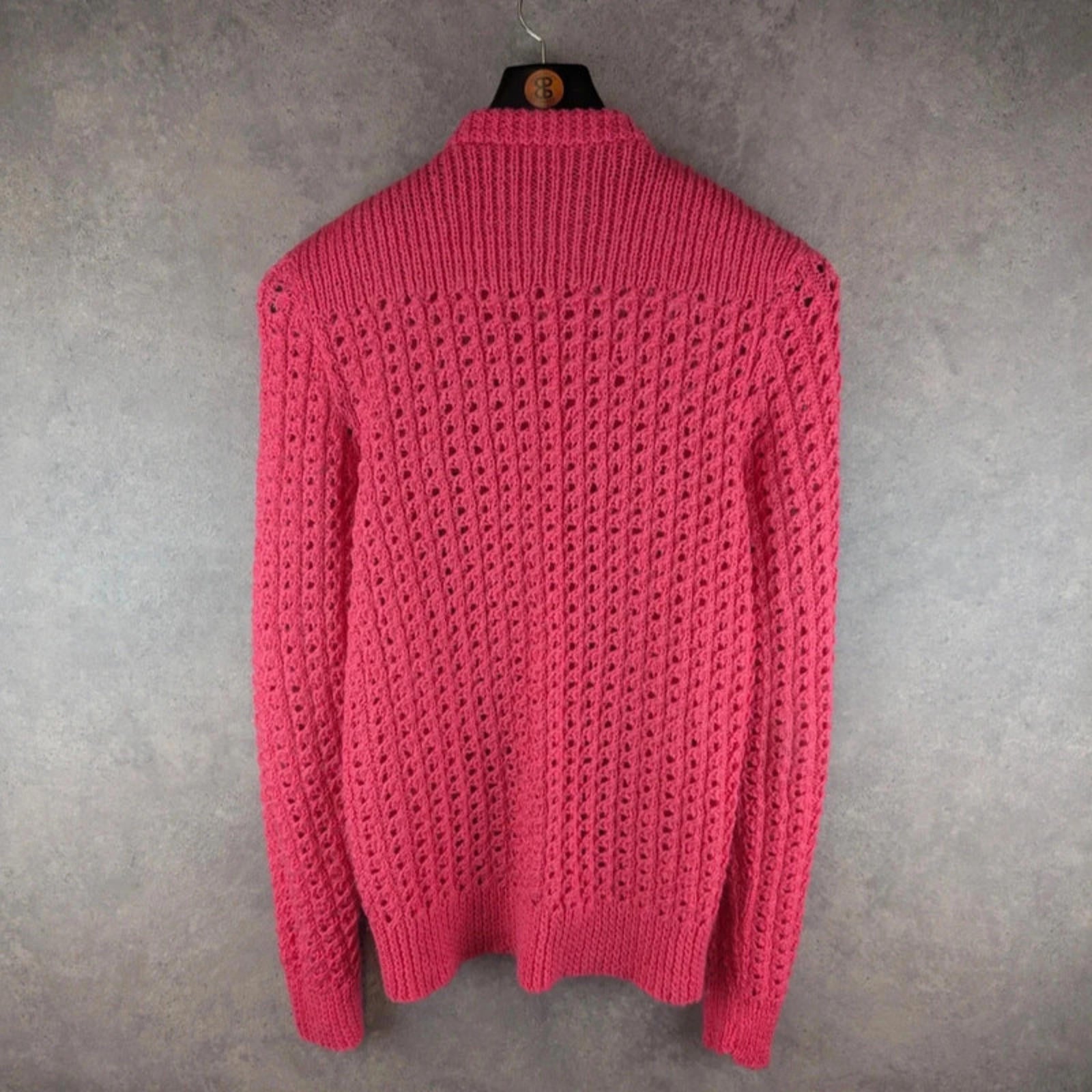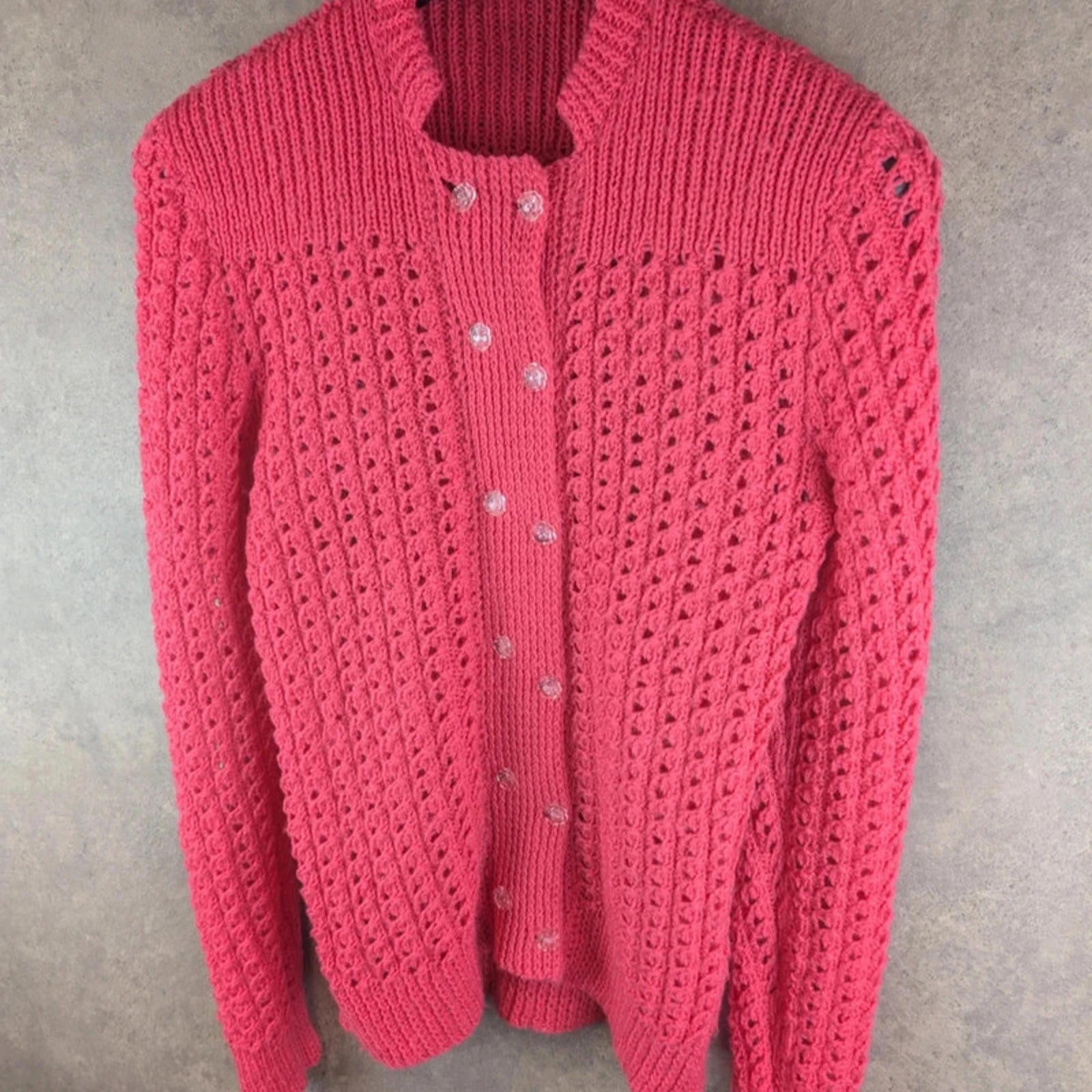 Hand Knitted Jumper Womens M Medium Pink Floral Cardigan