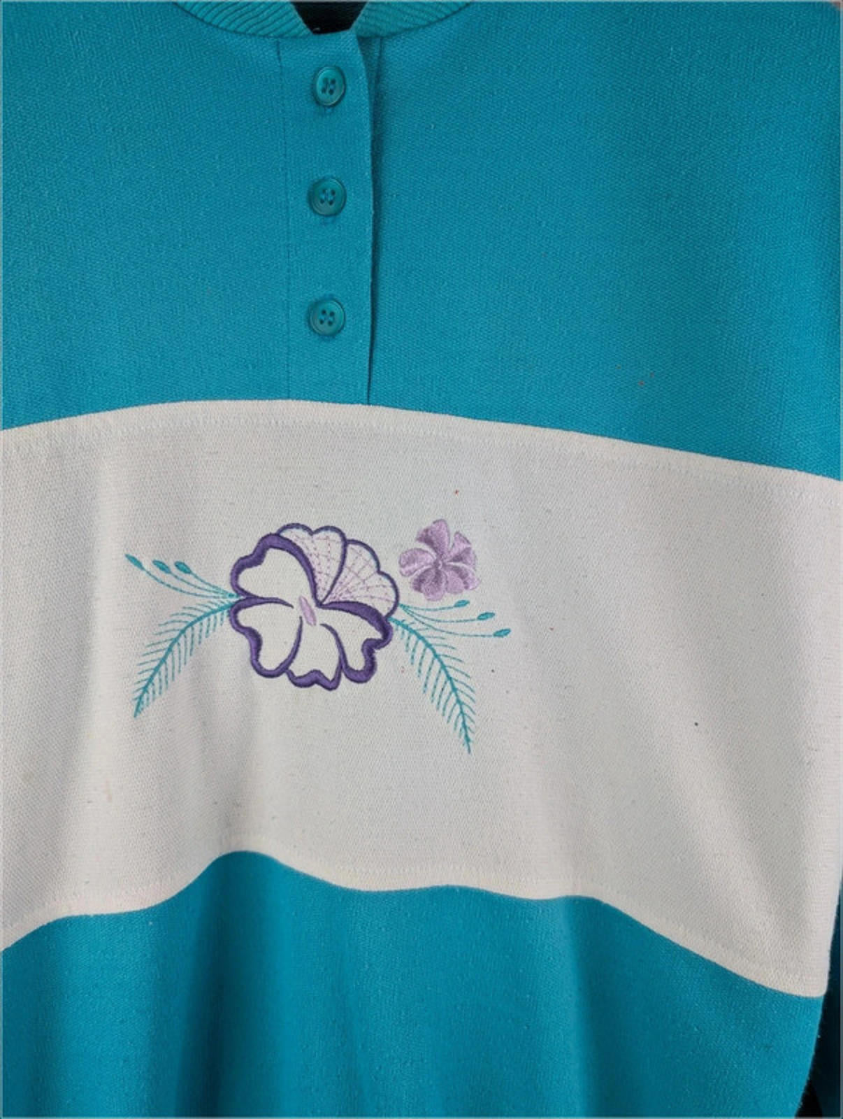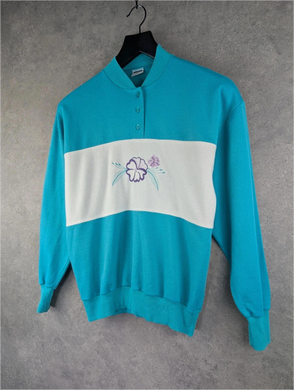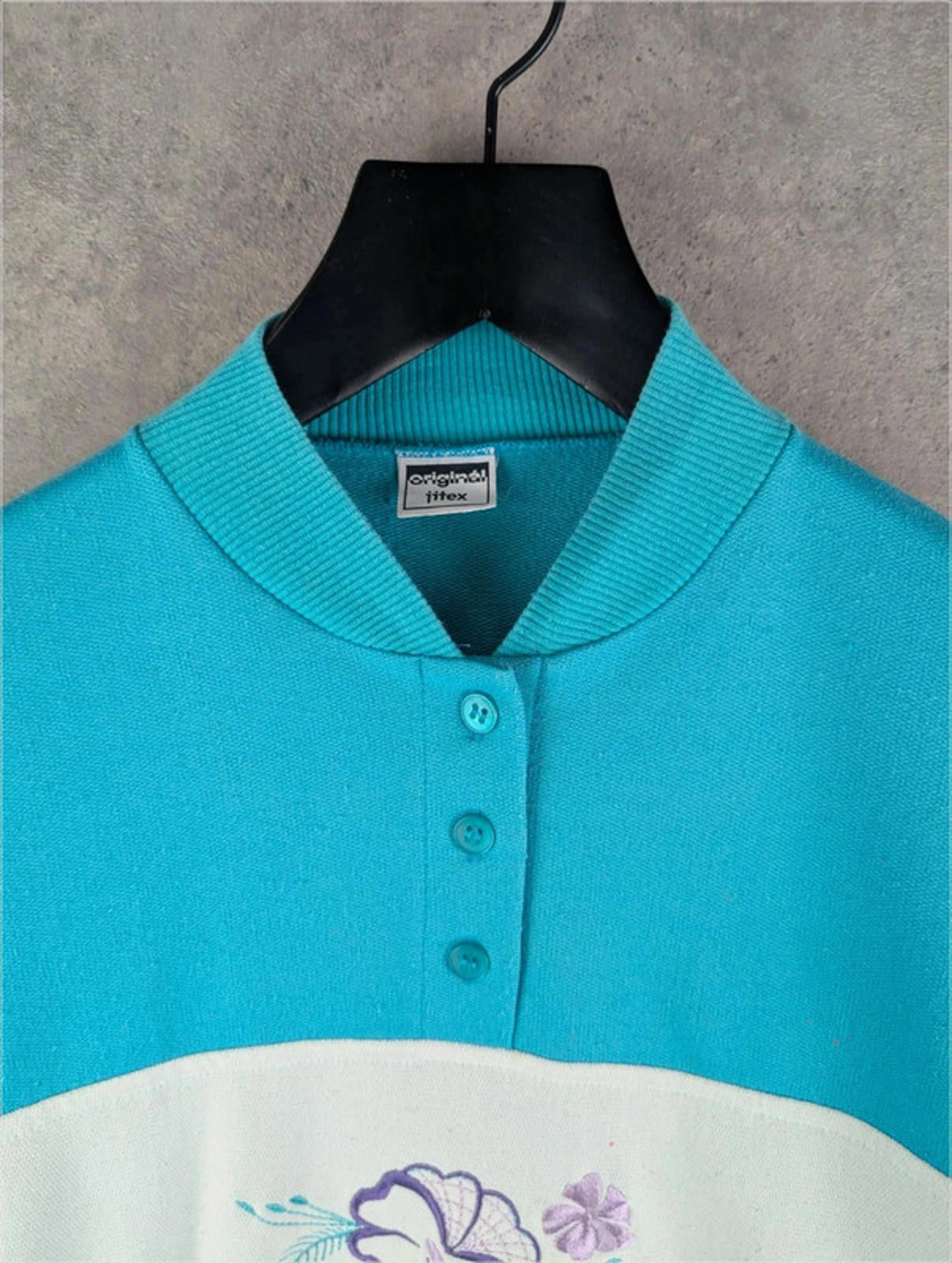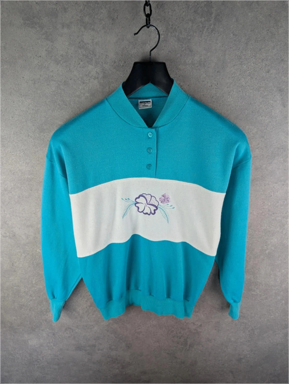 Jitex Jumper Womens Large L Blue Vintage 80s Floral Sweatshirt