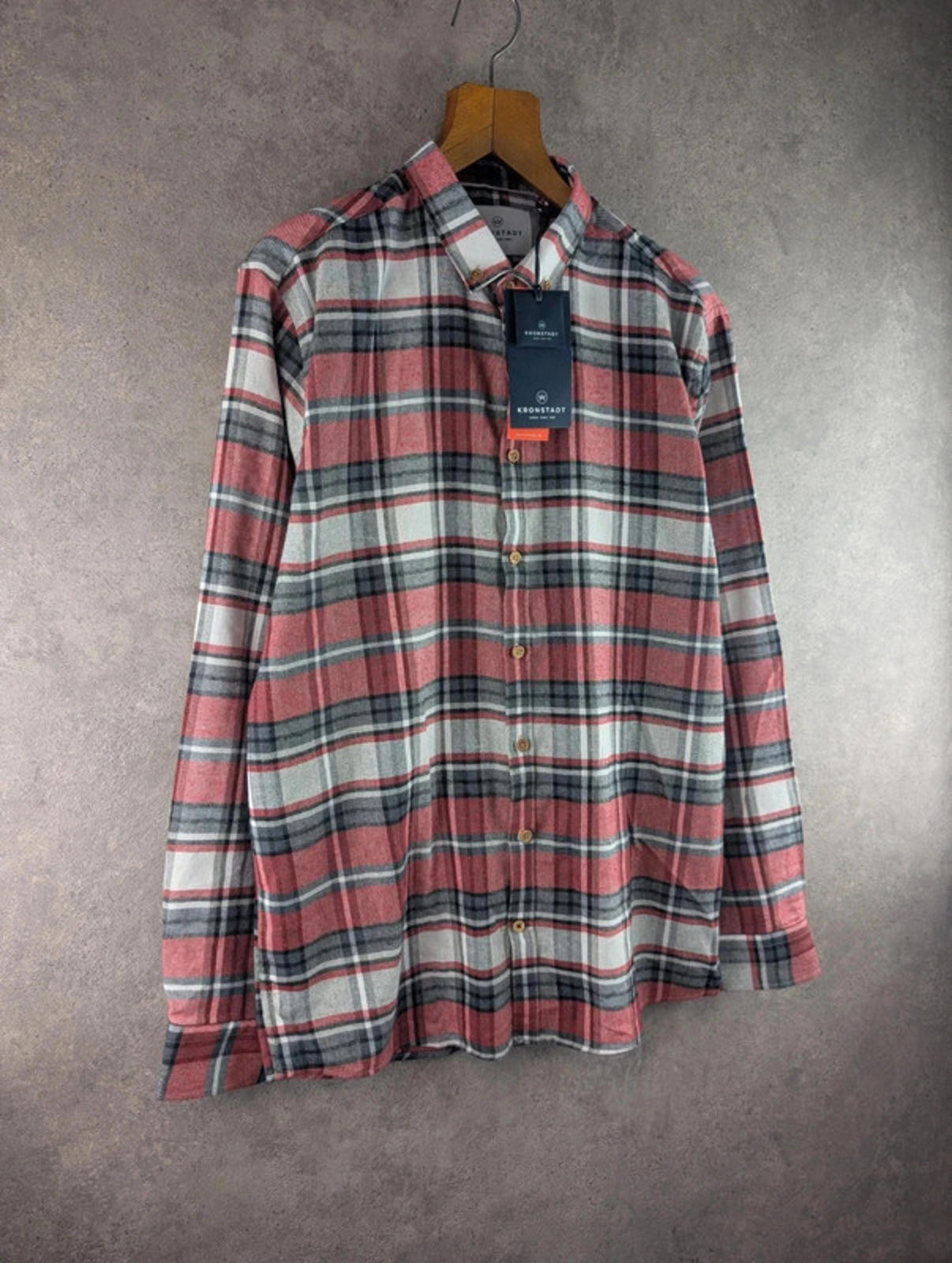 Increase quantity for Kronstadt Shirt Mens XXL 2XL Checked Long Sleeve New