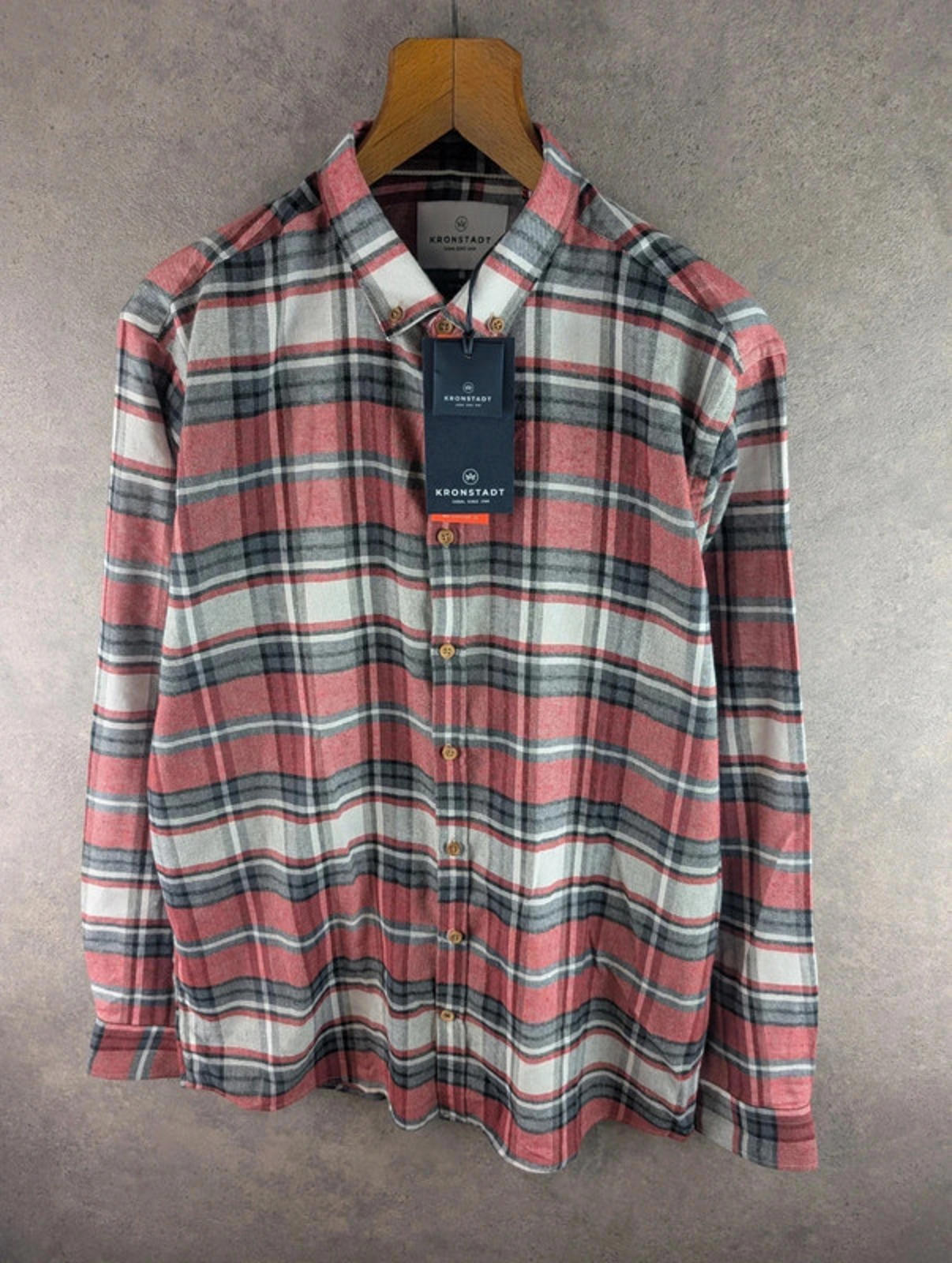 Kronstadt Shirt Mens XXL 2XL Checked Long Sleeve New