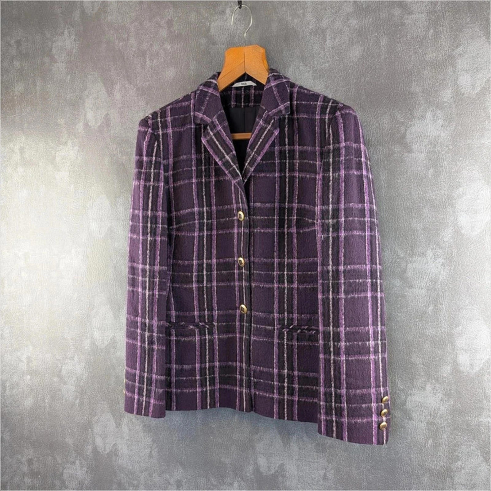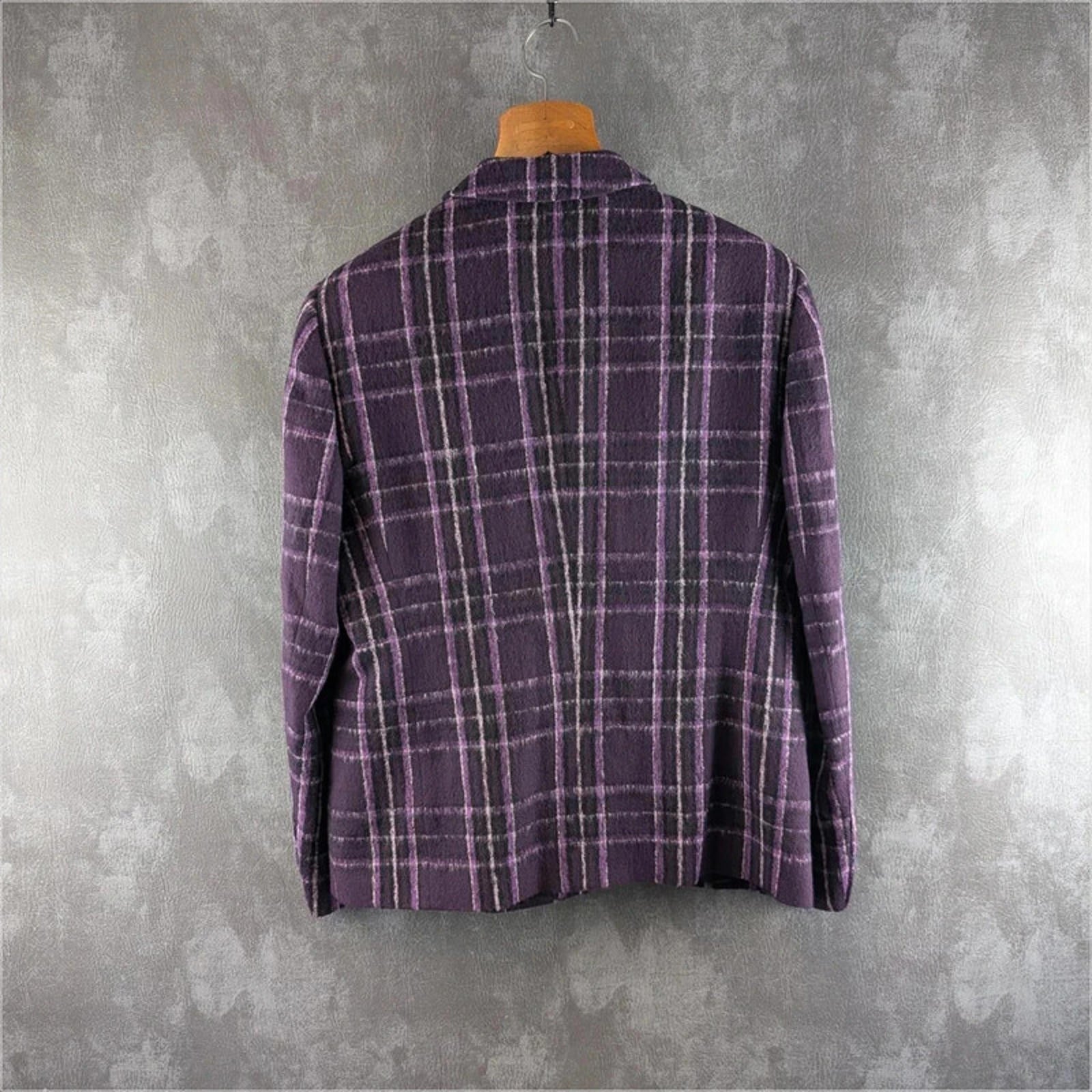 Increase quantity for Lucia Jacket Womens L Large Purple Tartan Wool Checked