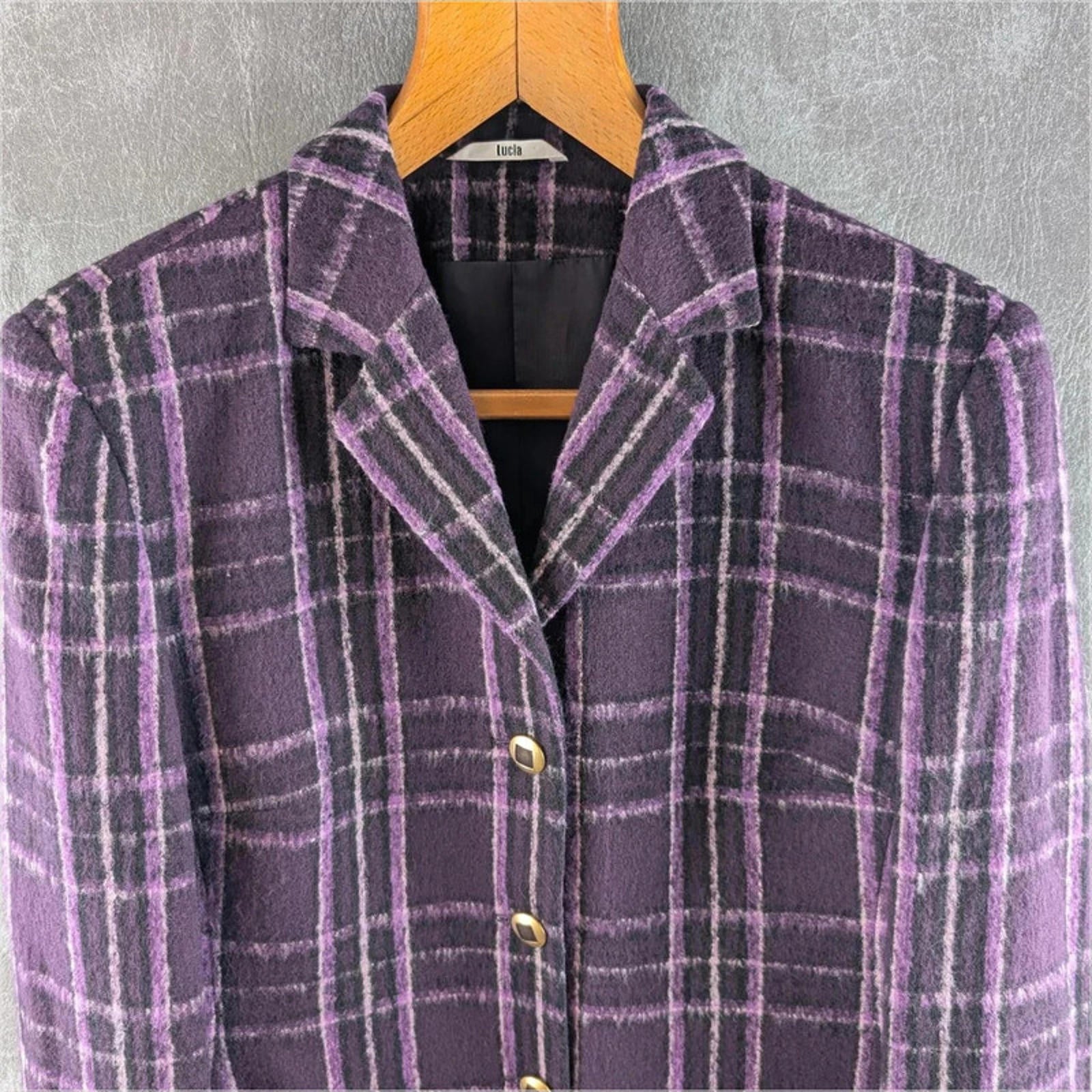 Lucia Jacket Womens L Large Purple Tartan Wool Checked