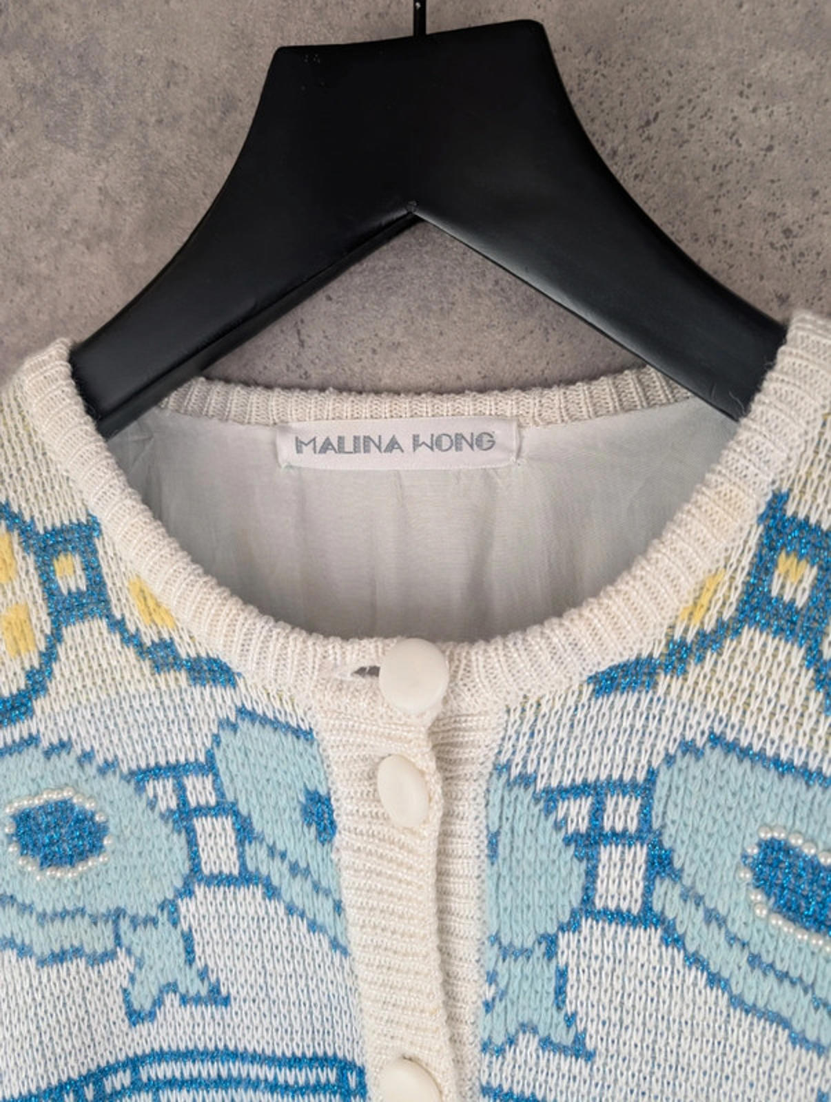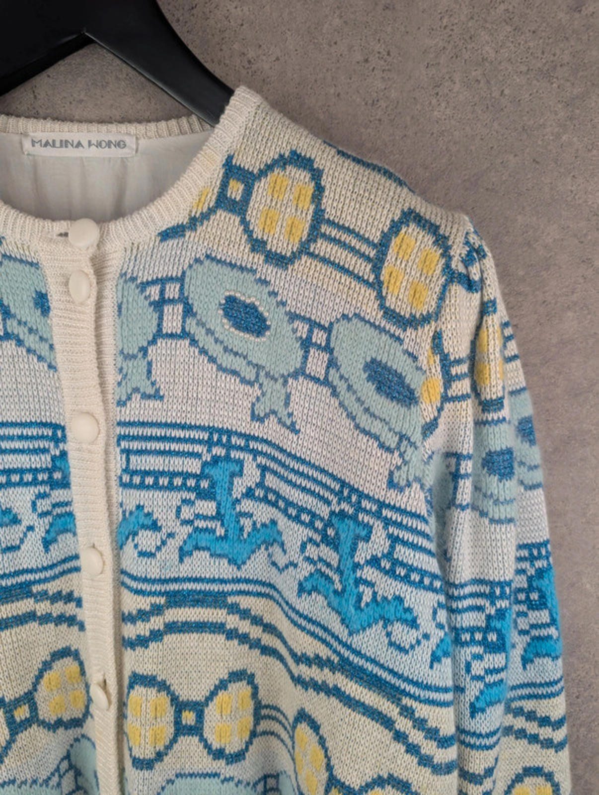 Malina Wong Cardigan Womens Large L Knitted Vintage Button-Up