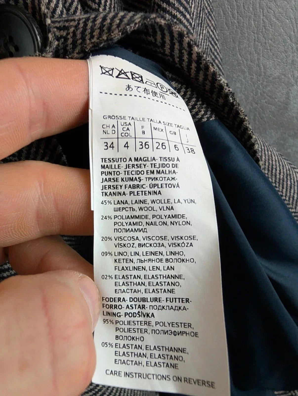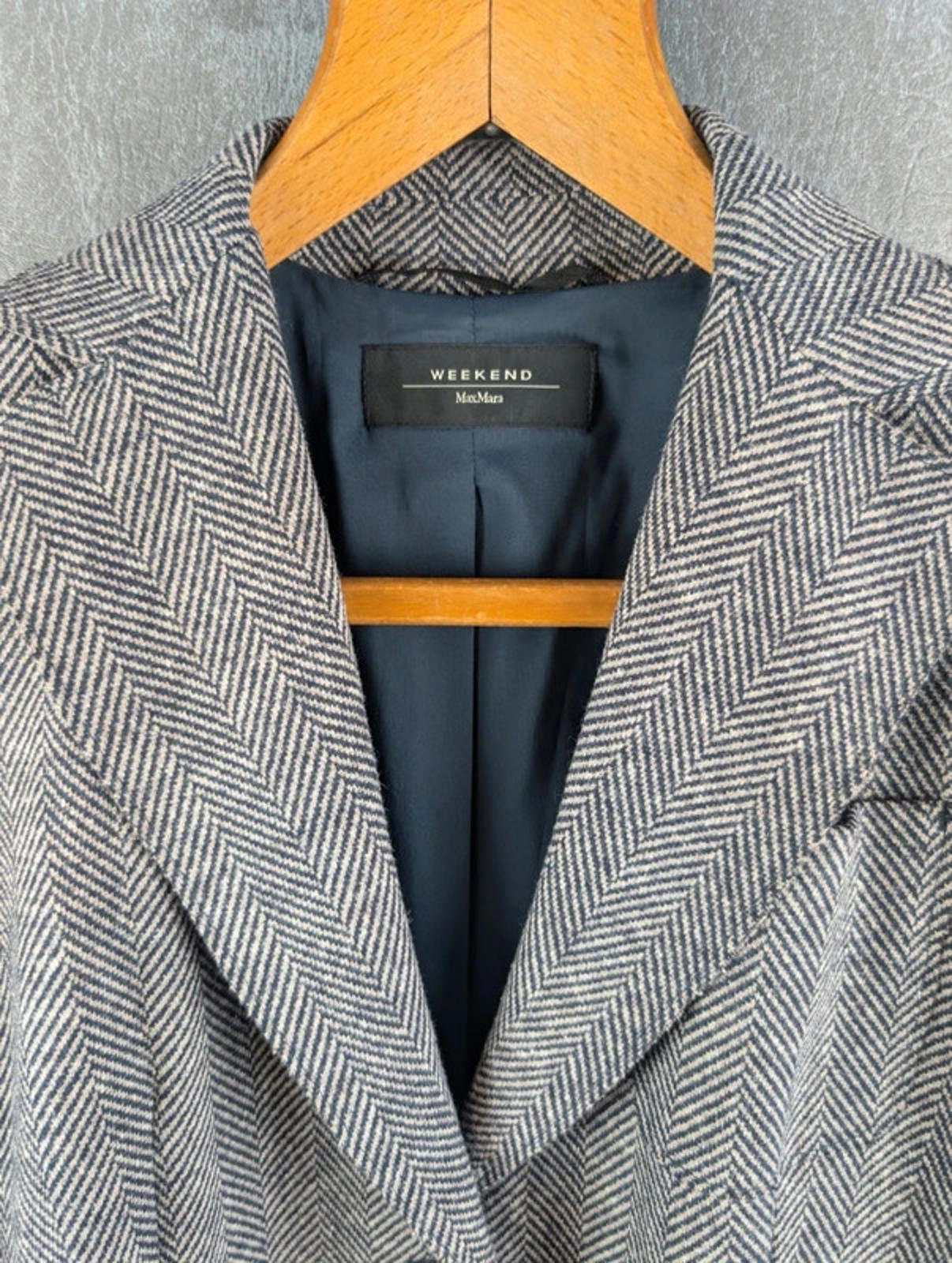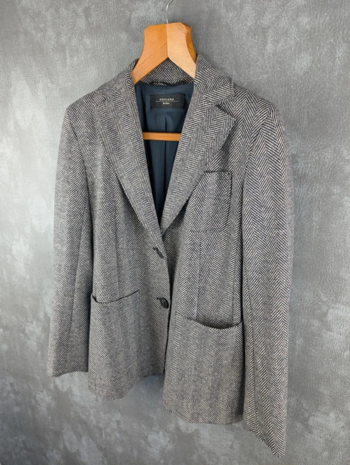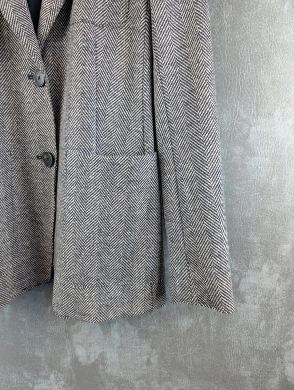 Max Mara Jacket Womens Extra Small XS Weekend Linen/Wool Herringbone Blazer Grey