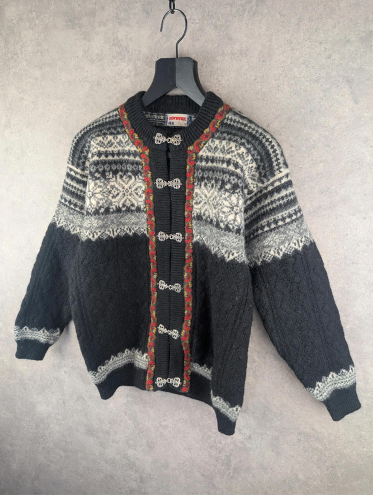 Decrease quantity for Norwear Cardigan Womens L Large Wool Vintage Fair Isle