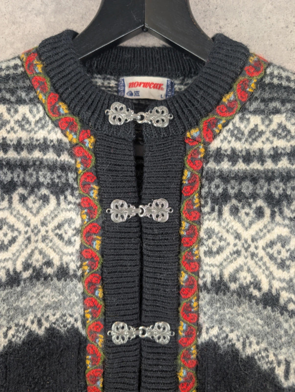 Norwear Cardigan Womens L Large Wool Vintage Fair Isle
