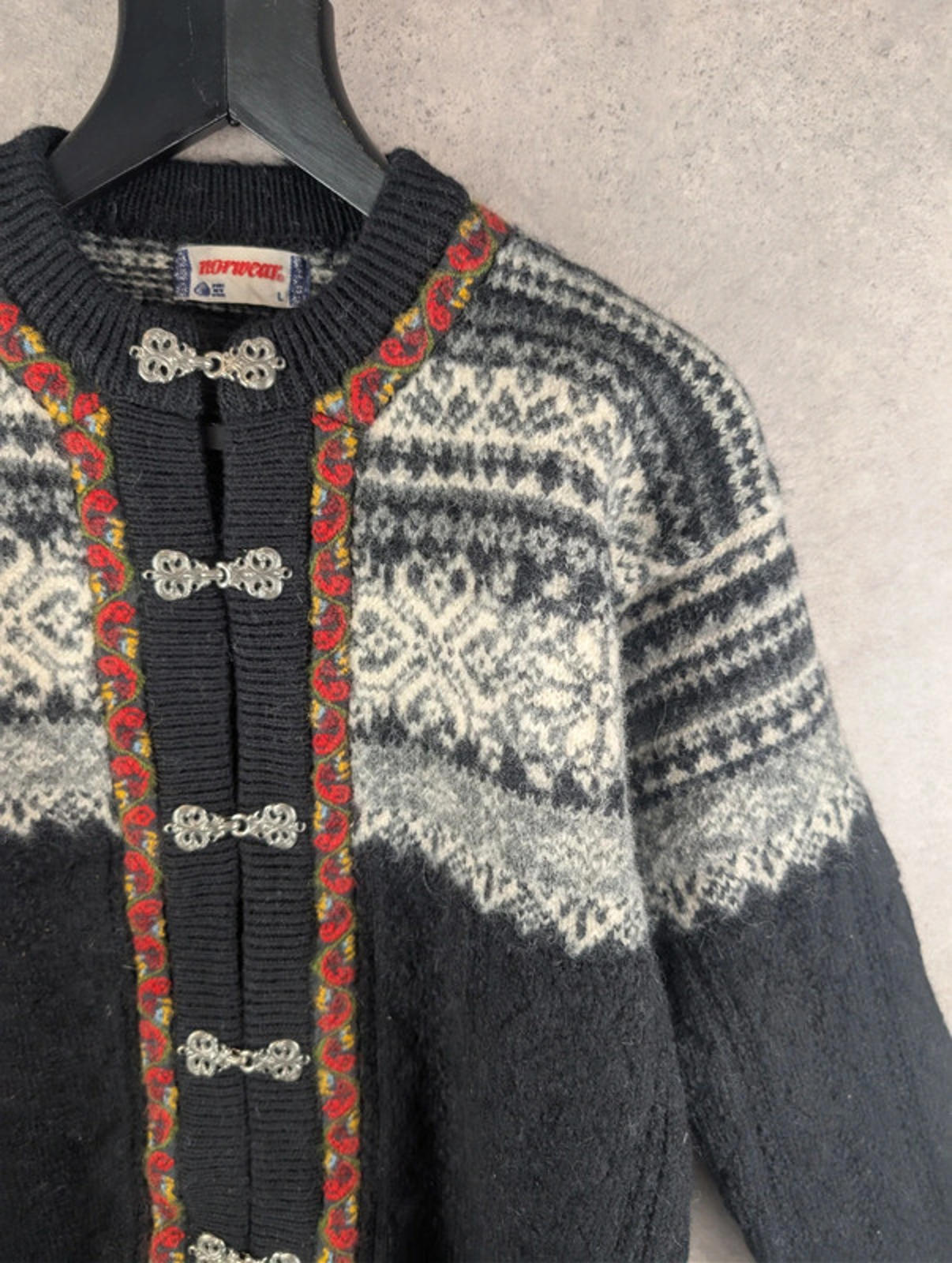 Increase quantity for Norwear Cardigan Womens L Large Wool Vintage Fair Isle