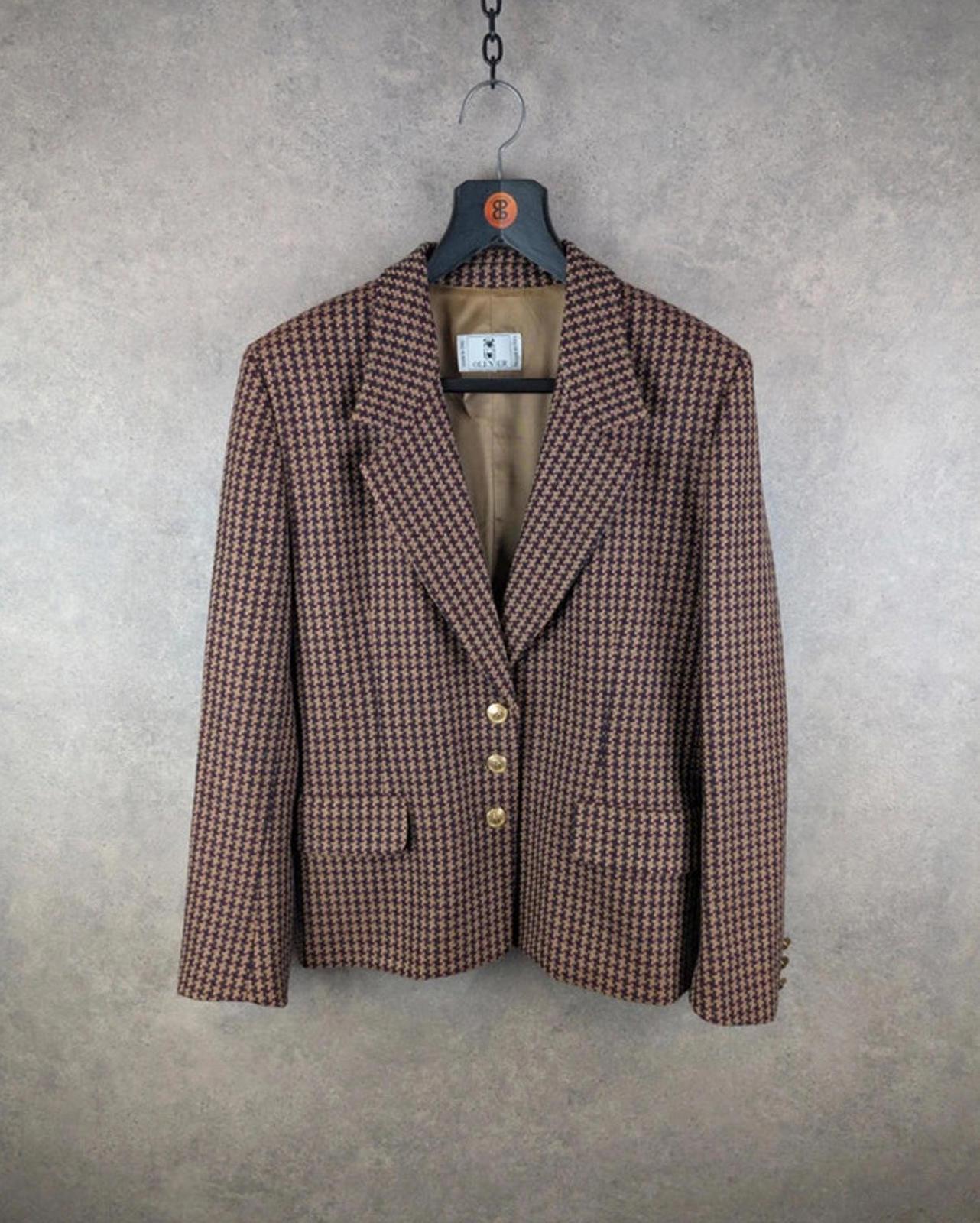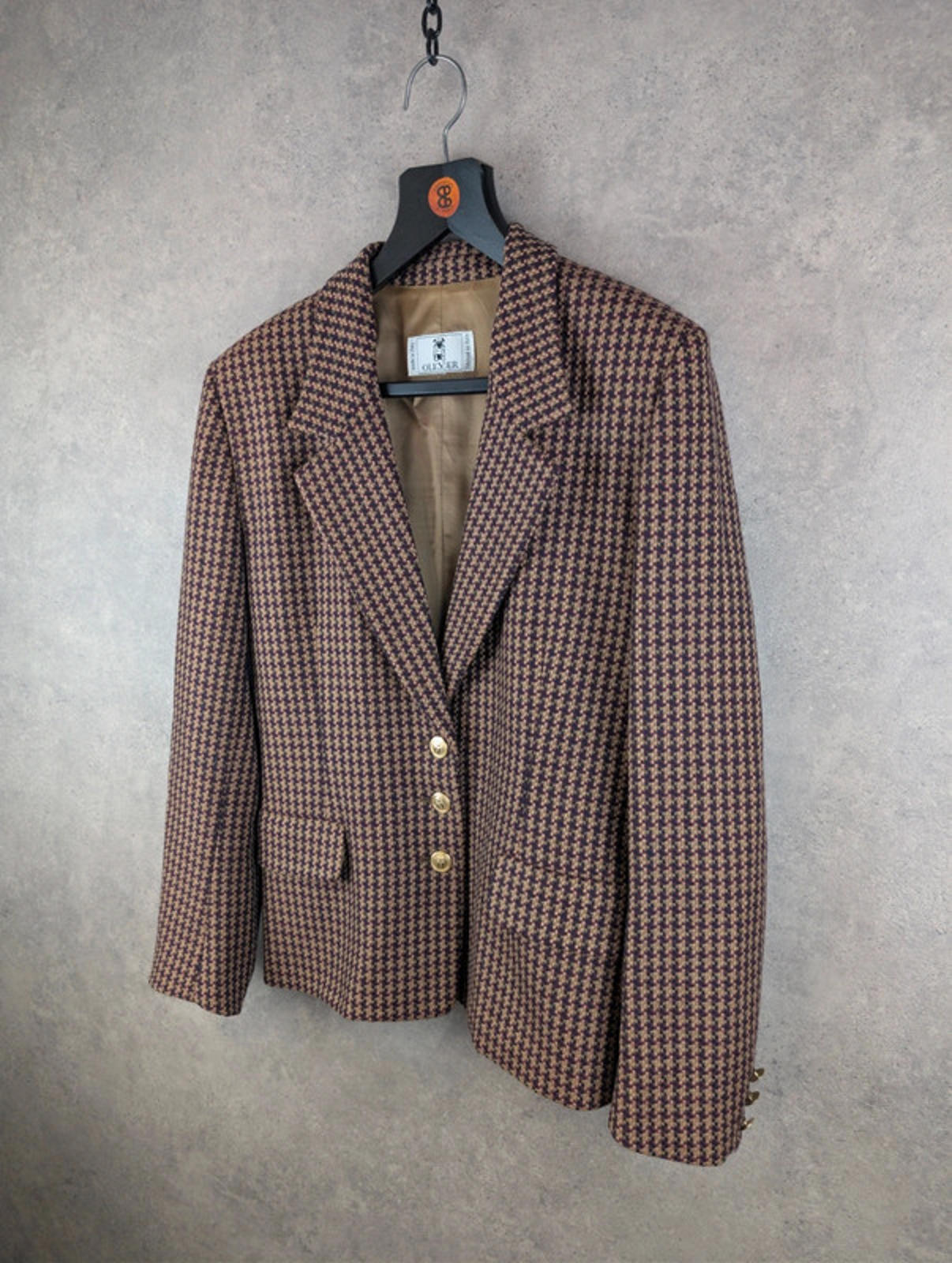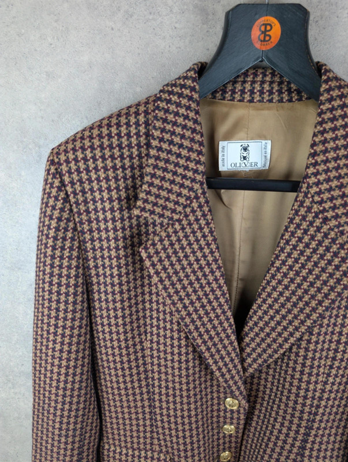 Oliver Jacket Womens Medium M Brown Vintage 90s Dog Tooth Blazer Lambswool