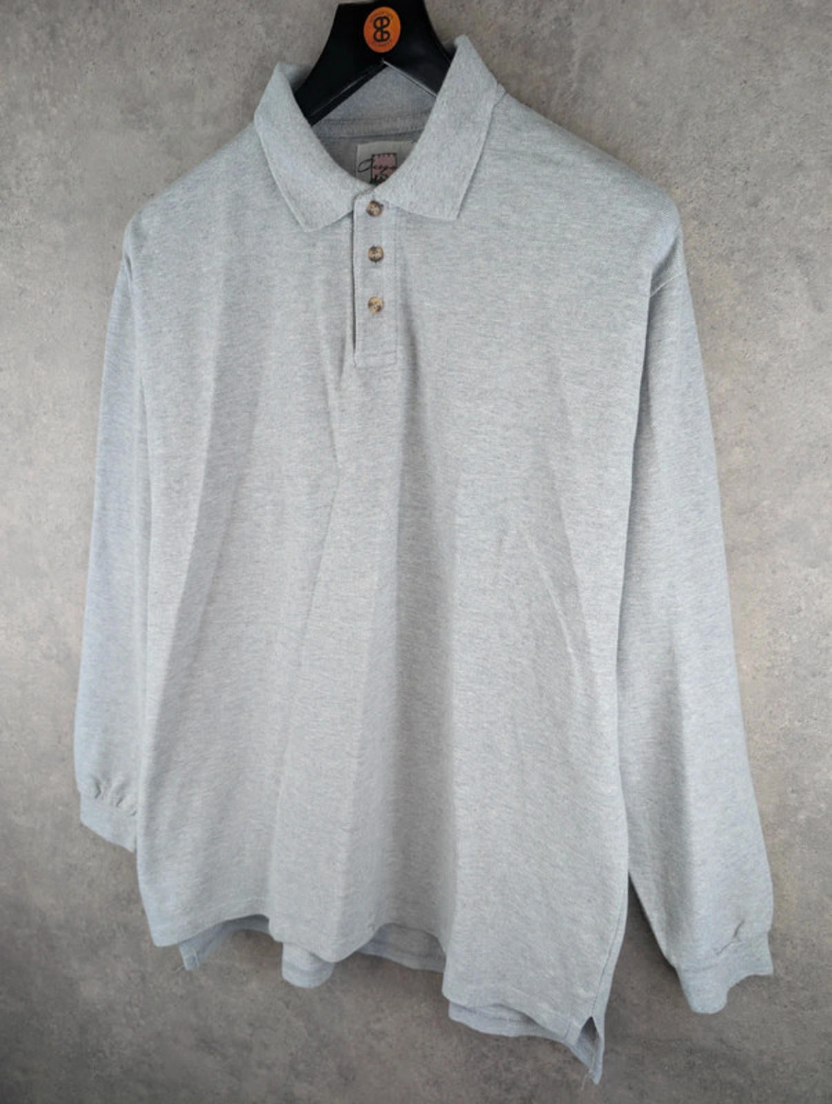 Decrease quantity for Oregon Shirt Mens Extra Large XL Grey Vintage 90s Polo Long Sleeve Cotton