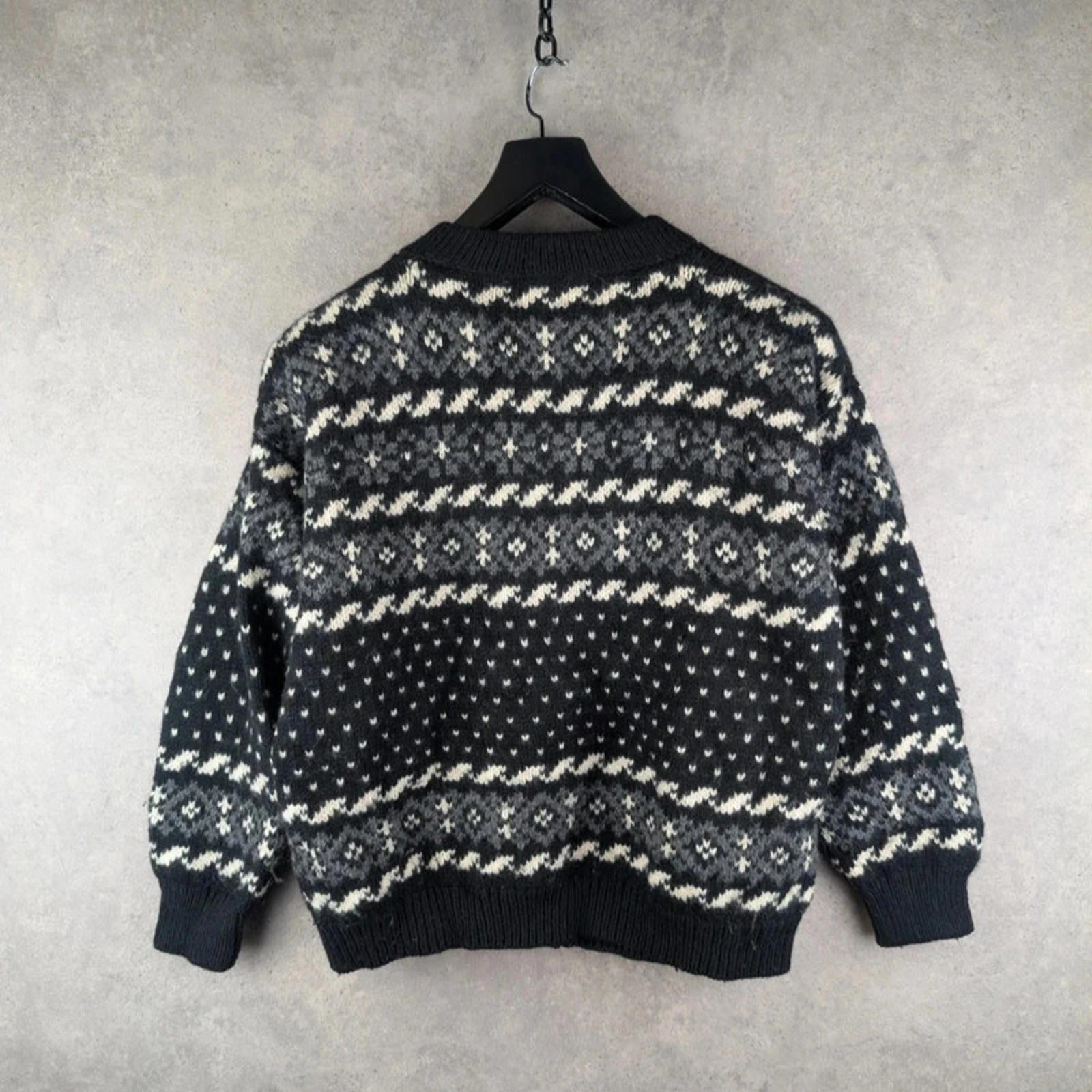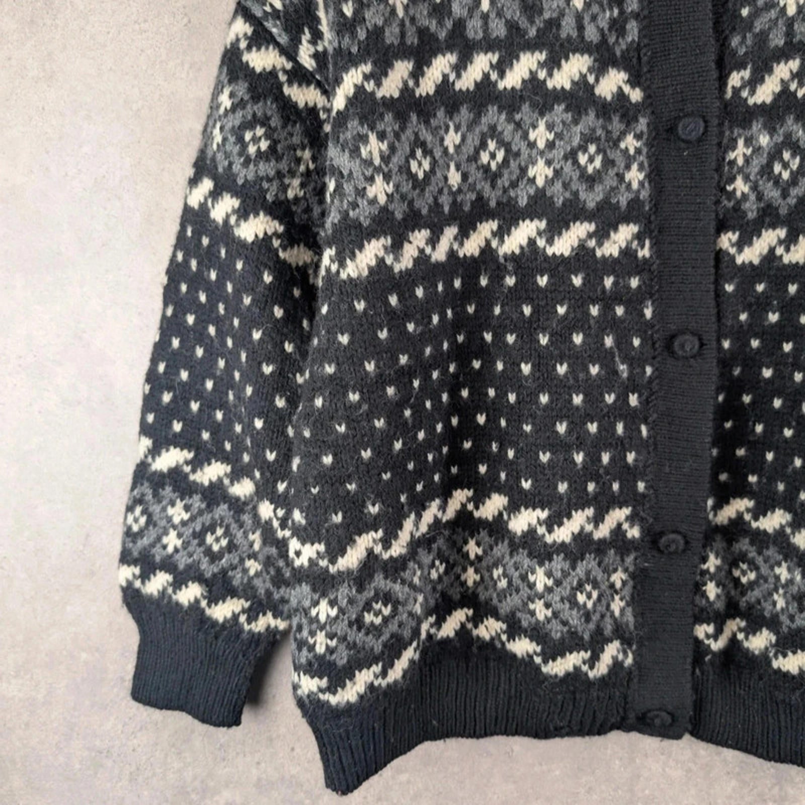 Decrease quantity for Peruvian Knitted Jumper Womens Large L Black Wool Vintage Alpaca Cardigan