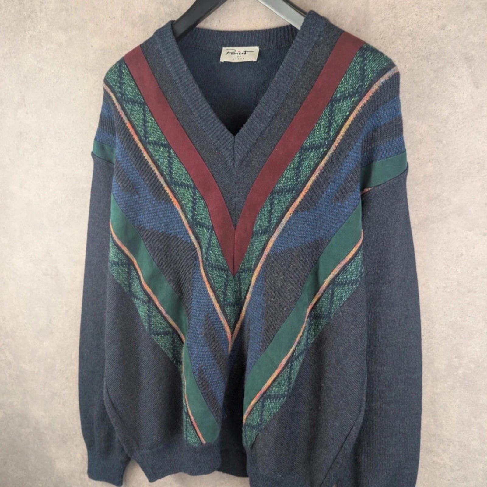 Increase quantity for Point Jumper Mens XL Extra Large Vintage Knitted Retro Pullover