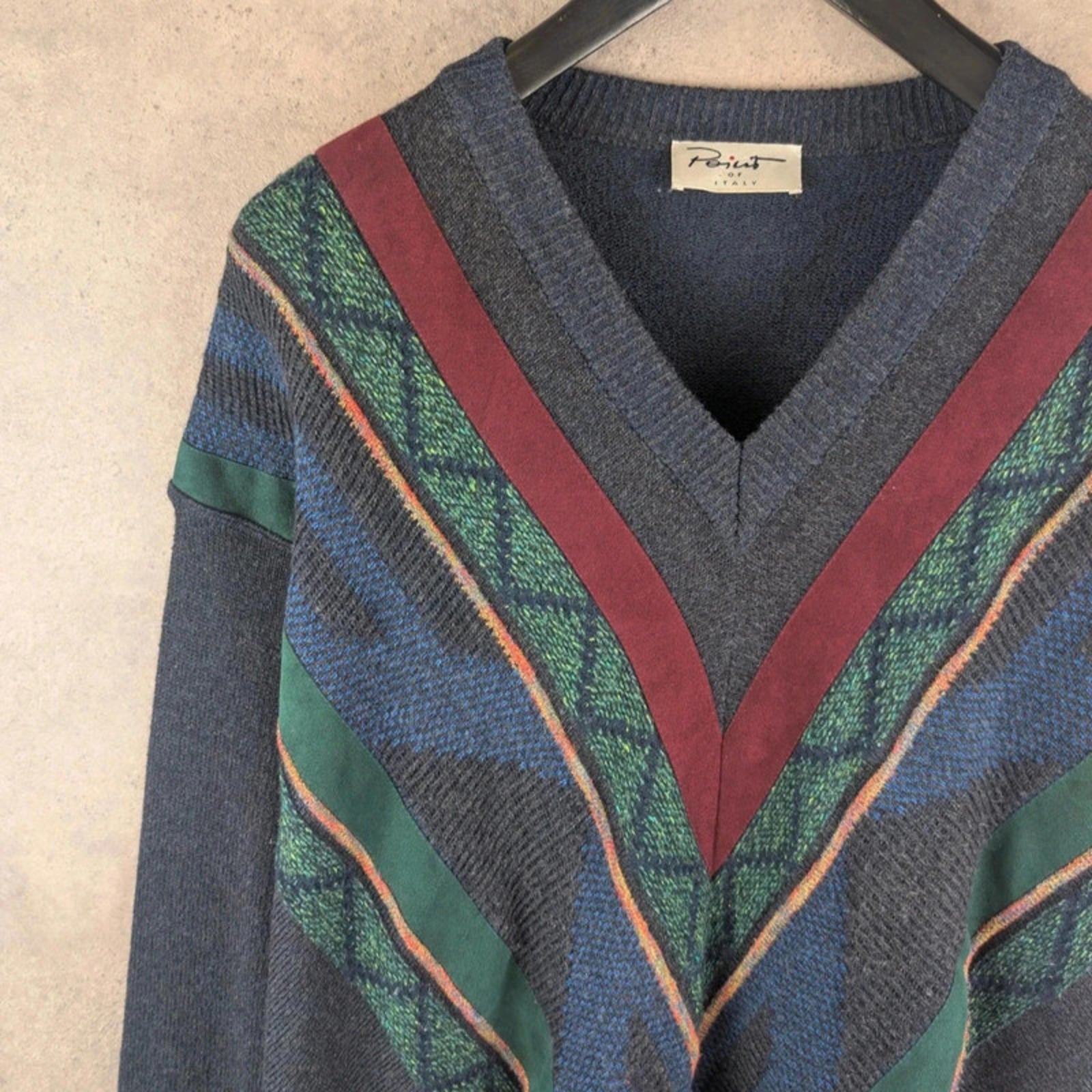 Point Jumper Mens XL Extra Large Vintage Knitted Retro Pullover