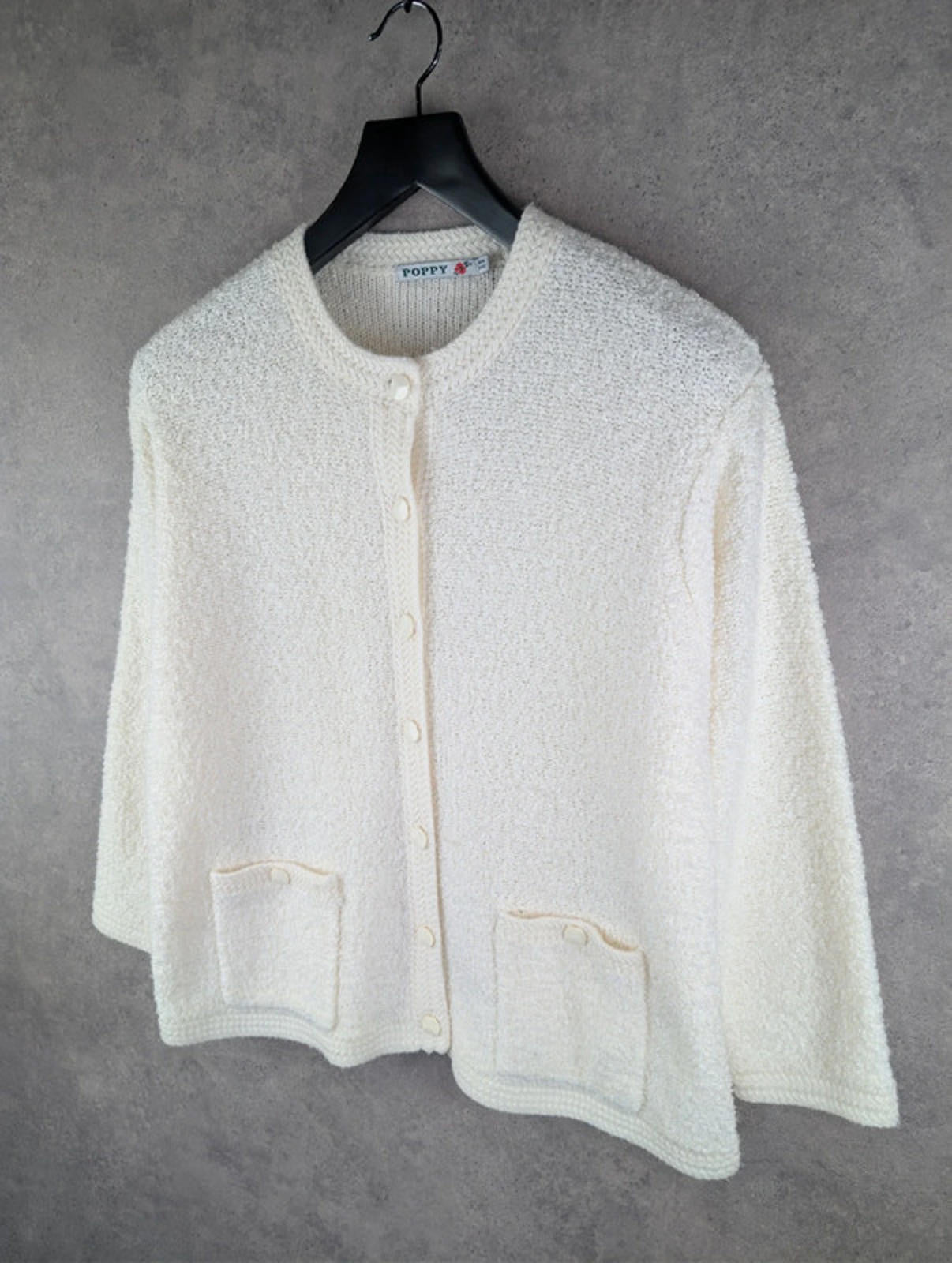 Decrease quantity for Poppy Cardigan Womens XXL 2XL White Vintage Button Up