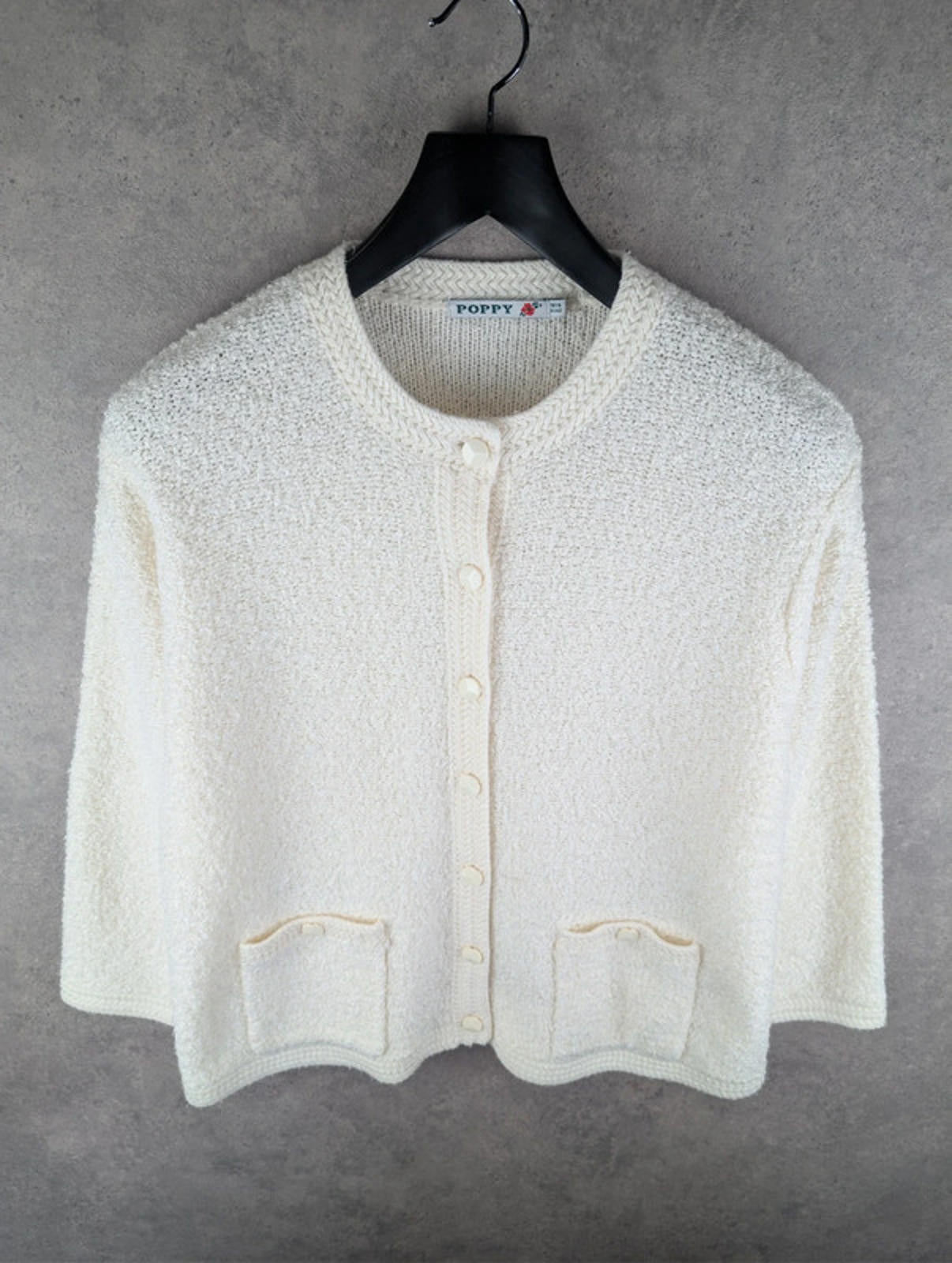 Poppy Cardigan Womens XXL 2XL White Vintage Button Up