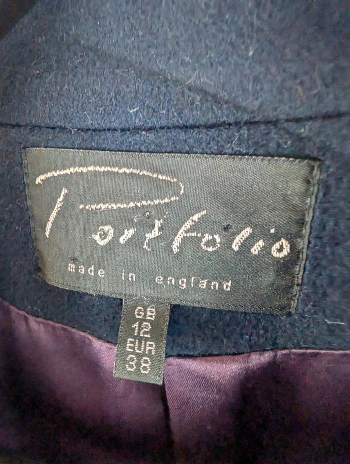 Portfolio Overcoat Womens M Medium Navy Cashmere Wool Vintage