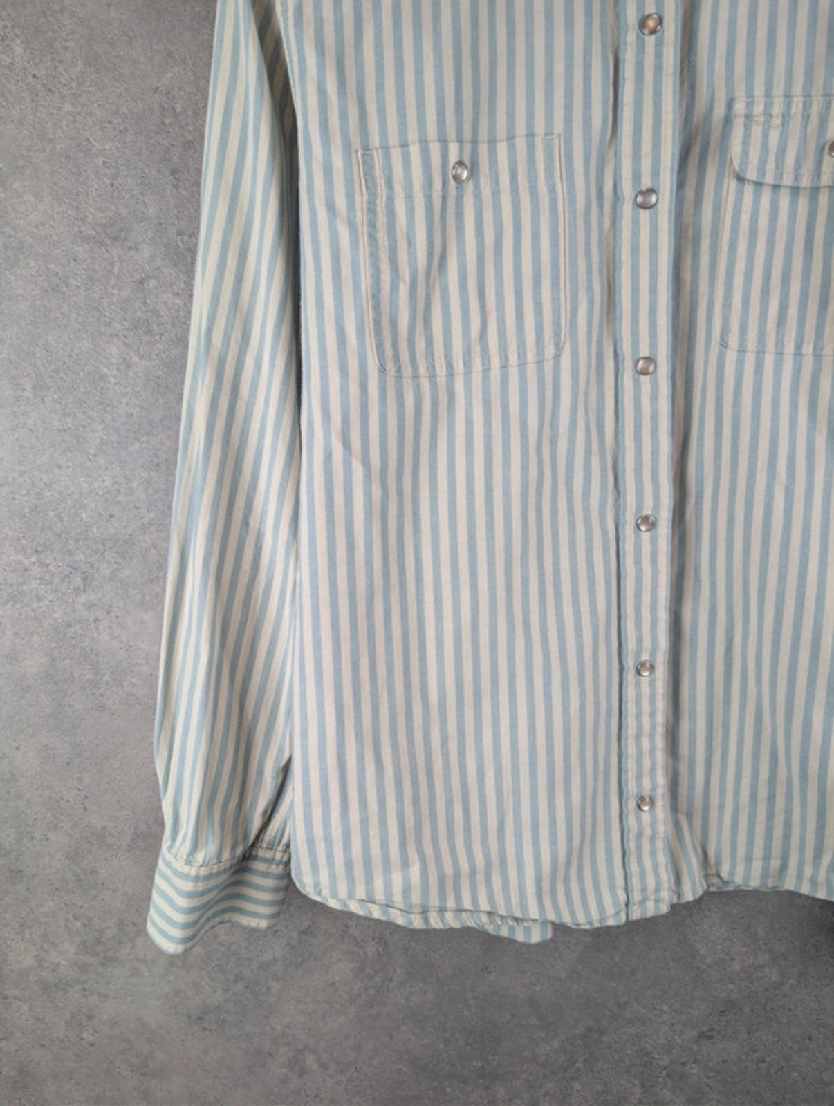 Increase quantity for Ralph Lauren Shirt Womens Medium M Long Sleeve Snap Button Pin Stripe Vintage 90s