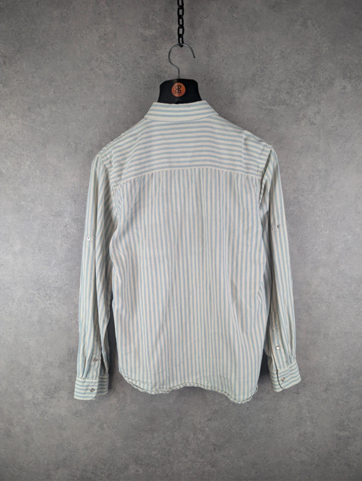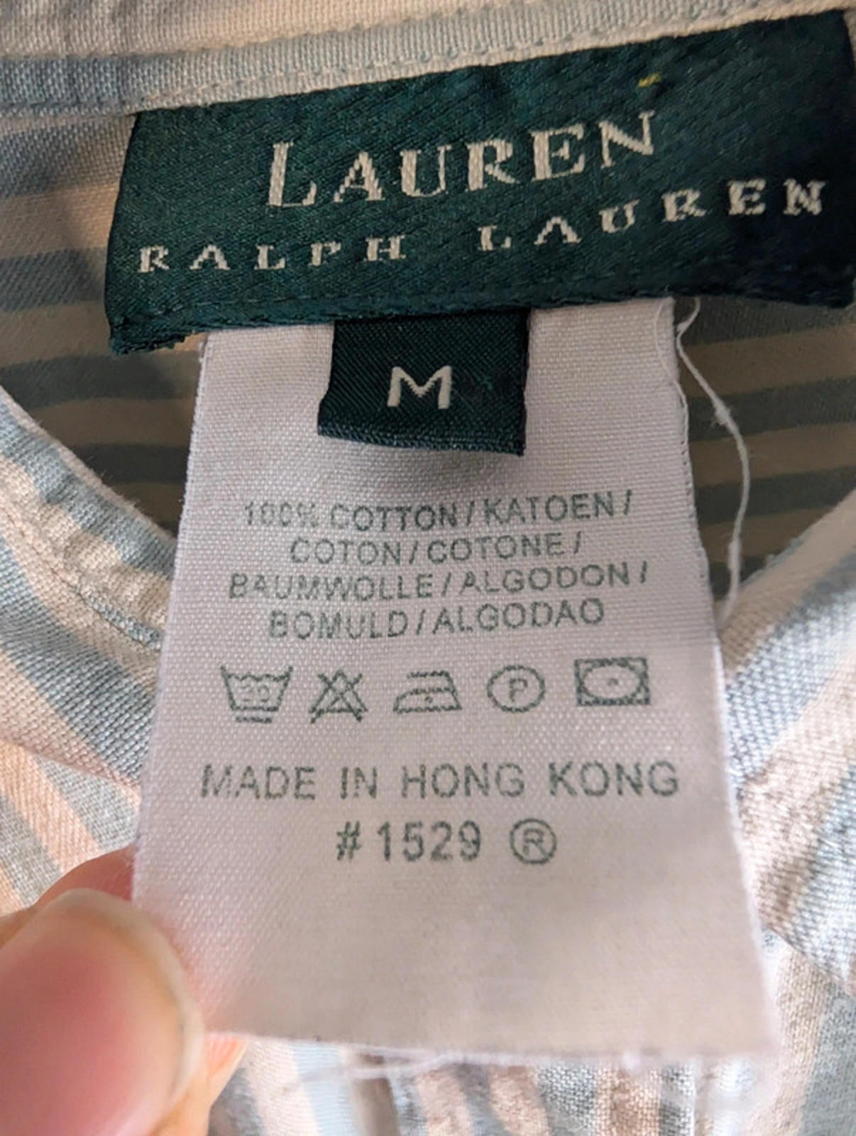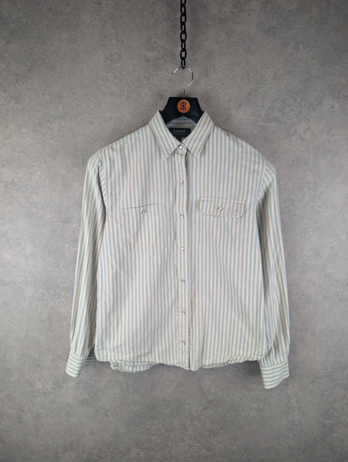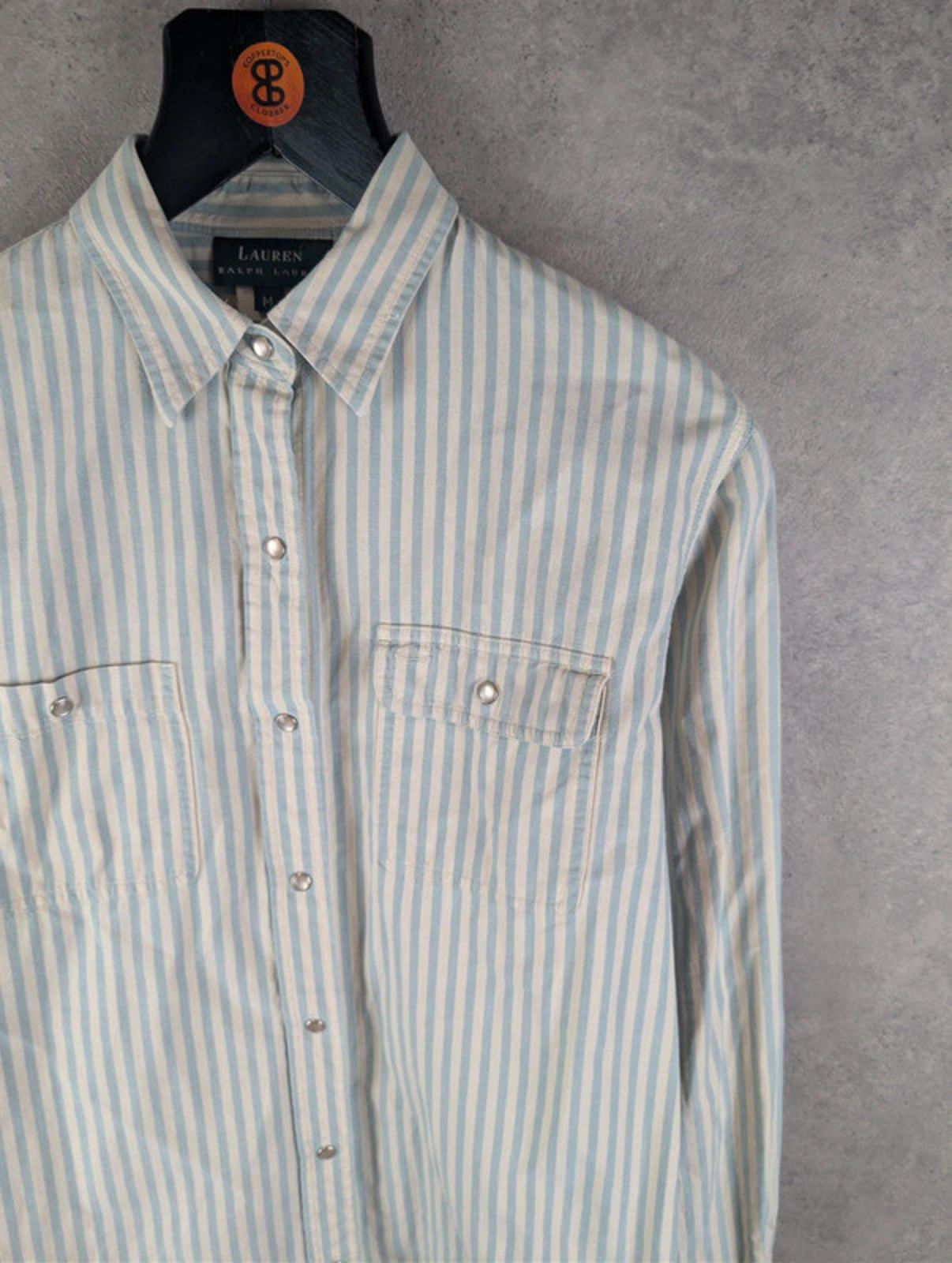 Ralph Lauren Shirt Womens Medium M Long Sleeve Snap Button Pin Stripe Vintage 90s