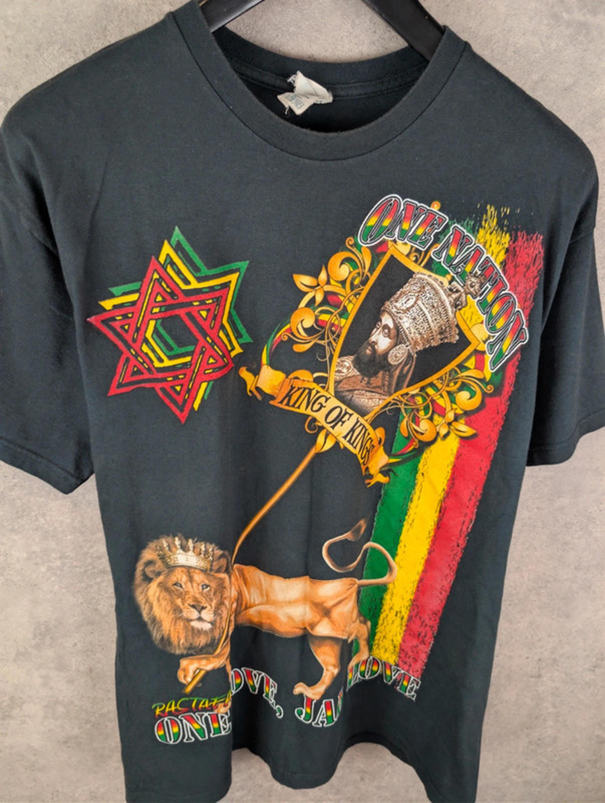Rastafari Print T-Shirt Mens Extra Large XL Vintage Delta Short Sleeve