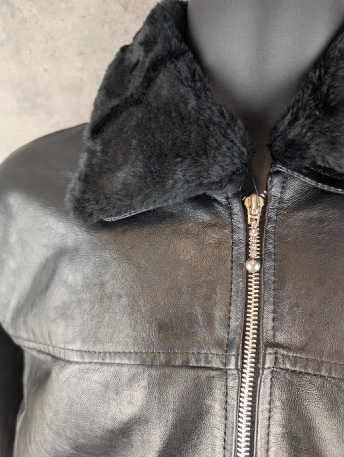 Increase quantity for Sardar Jacket Womens XS Extra Small Leather Black Oversized Vintage 90s