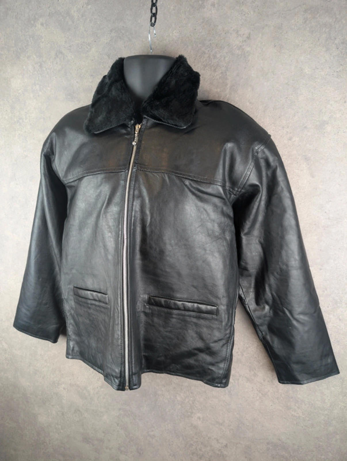 Decrease quantity for Sardar Jacket Womens XS Extra Small Leather Black Oversized Vintage 90s