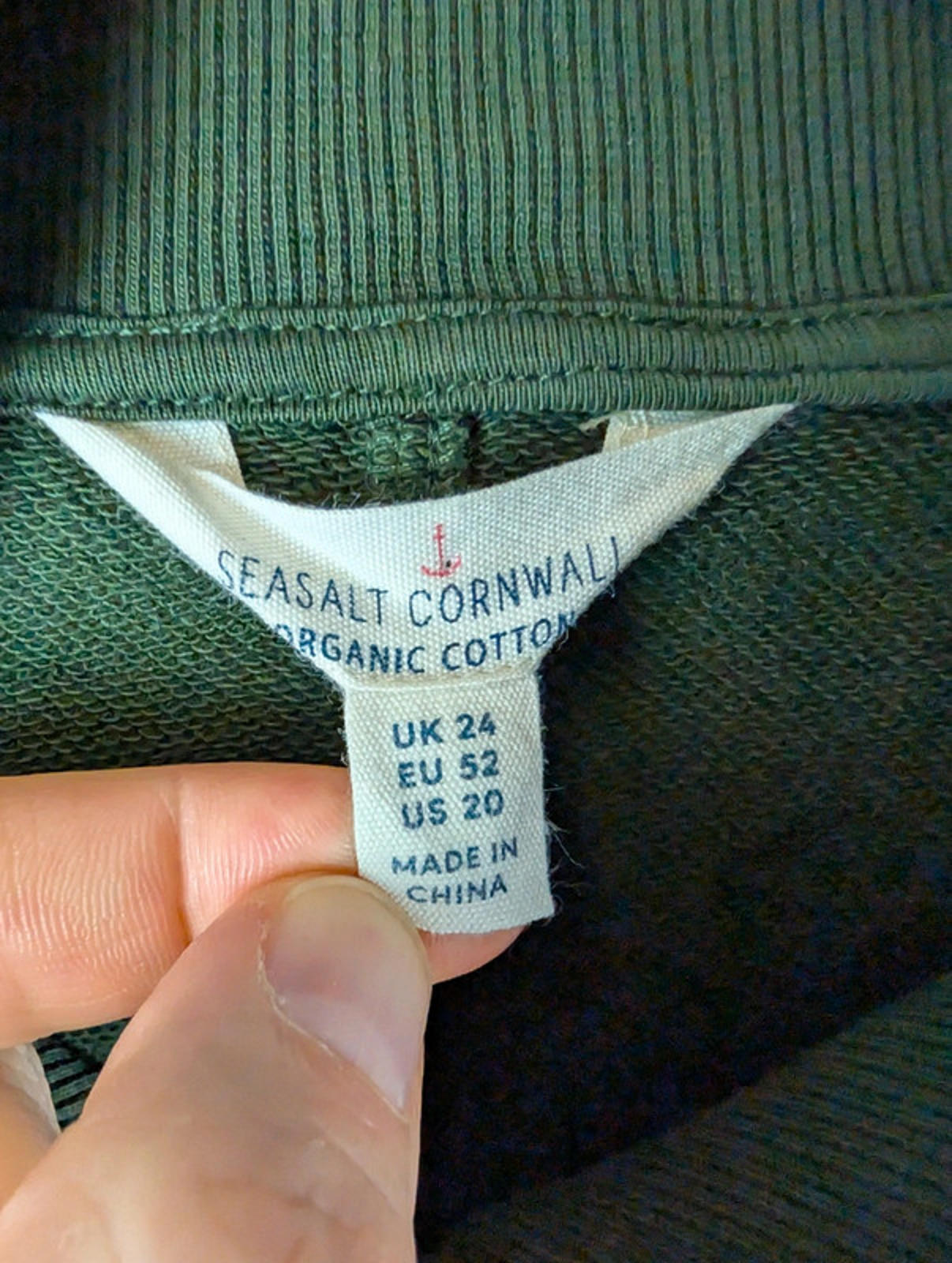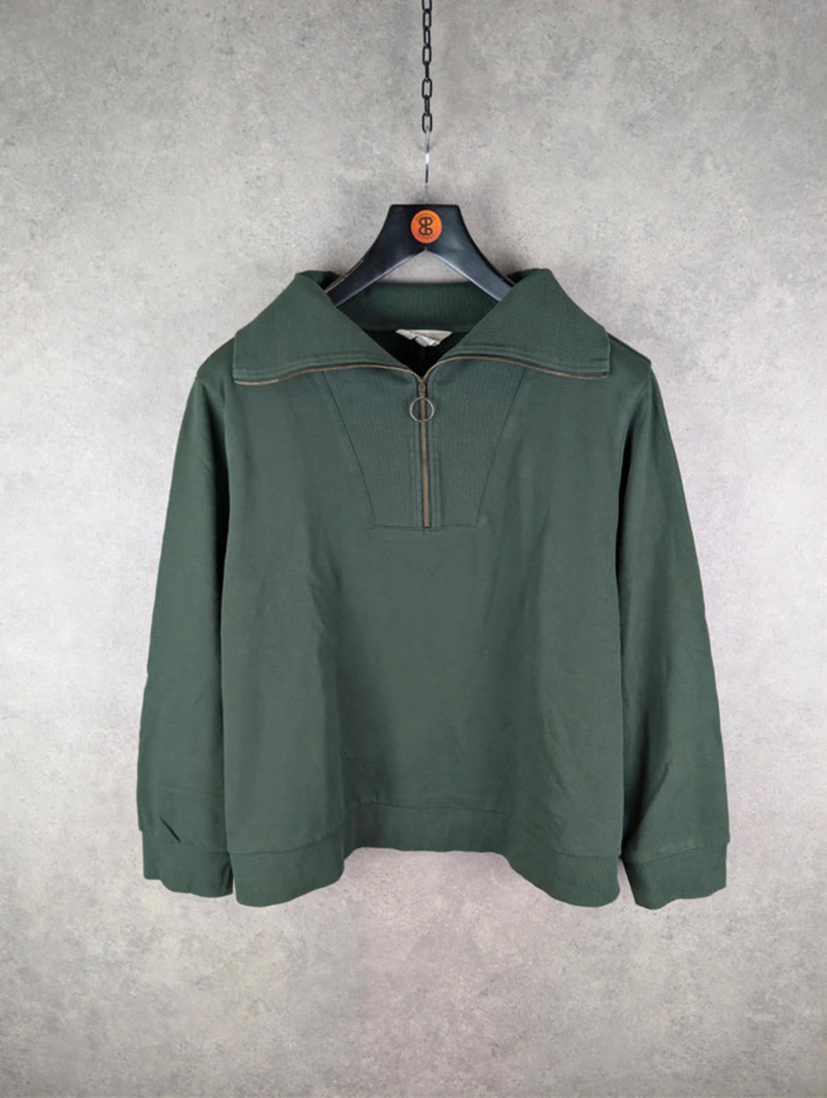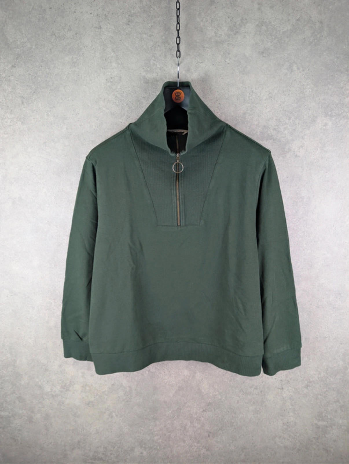 Seasalt Cornwall Jumper Womens Size 24 Green Pullover Quarter Zip Organic Cotton