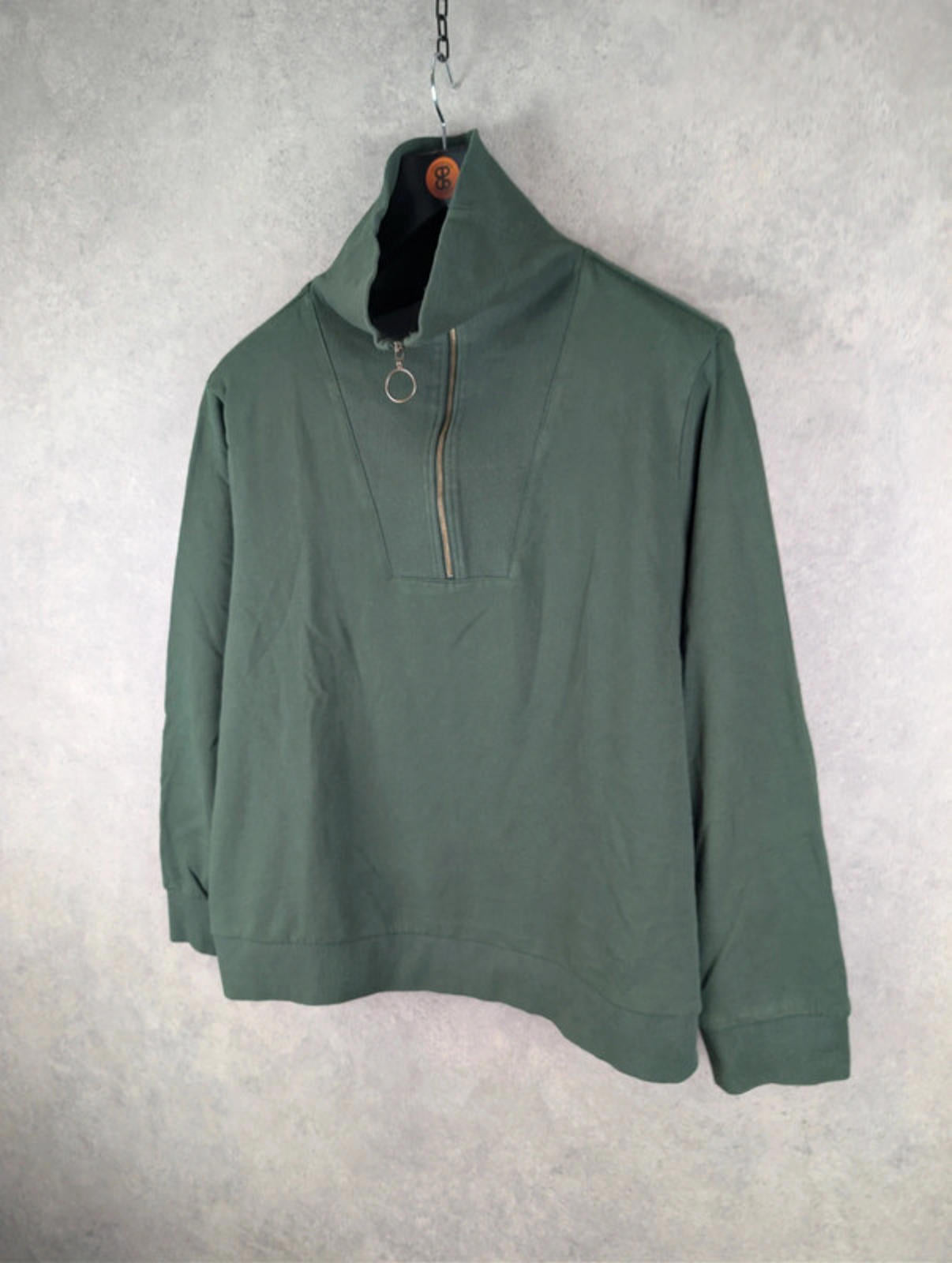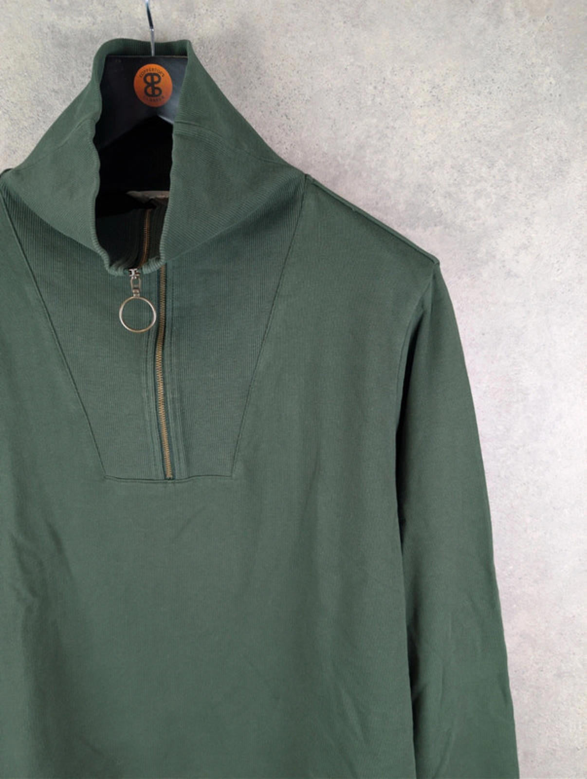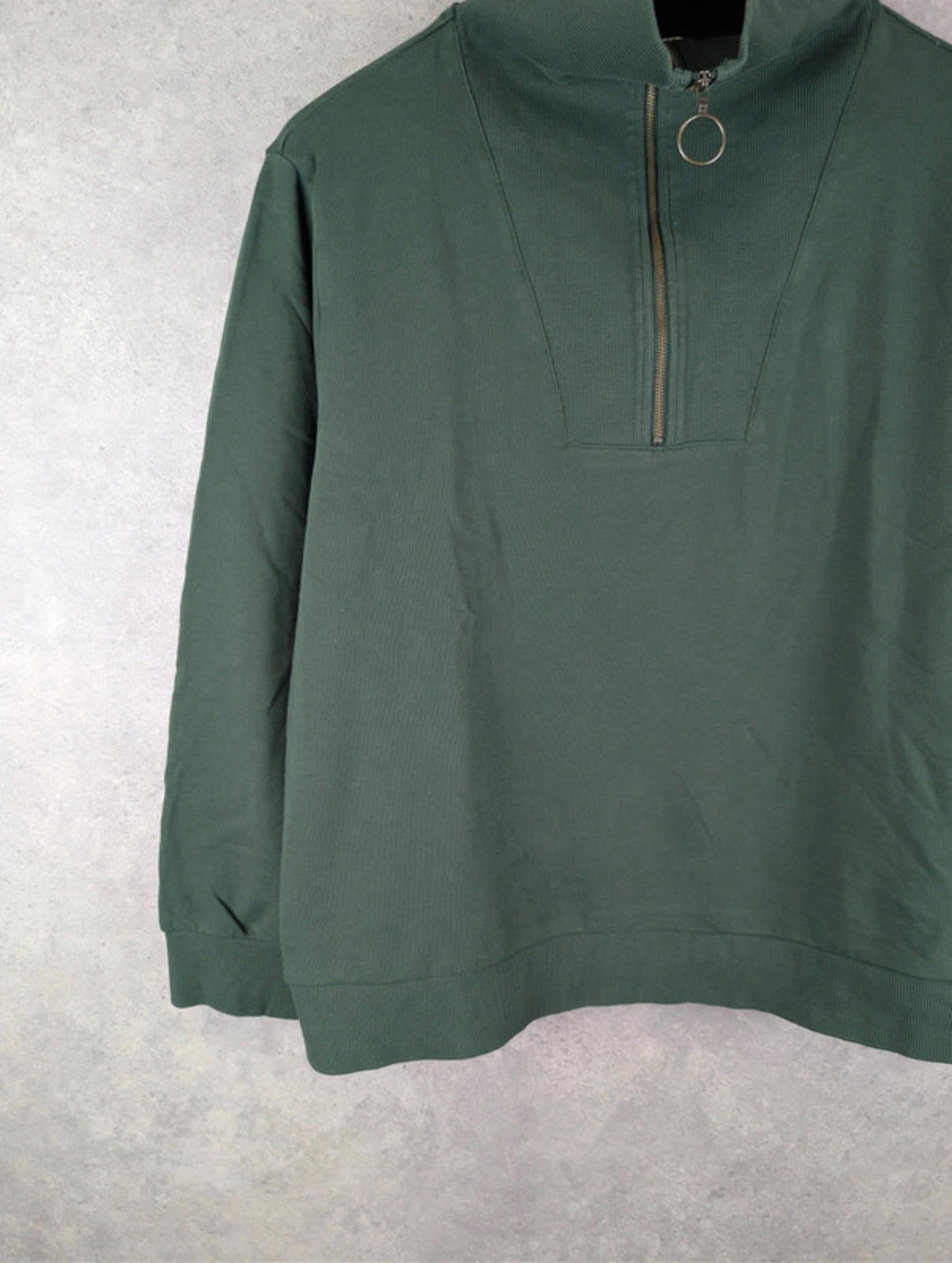 Seasalt Cornwall Jumper Womens Size 24 Green Pullover Quarter Zip Organic Cotton