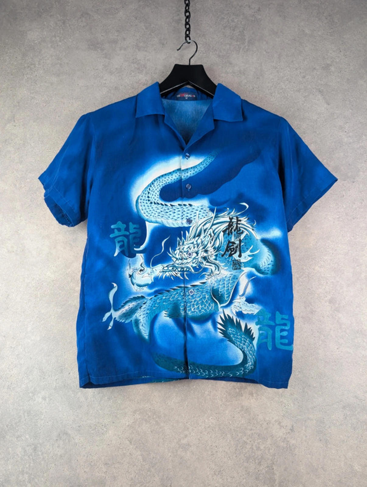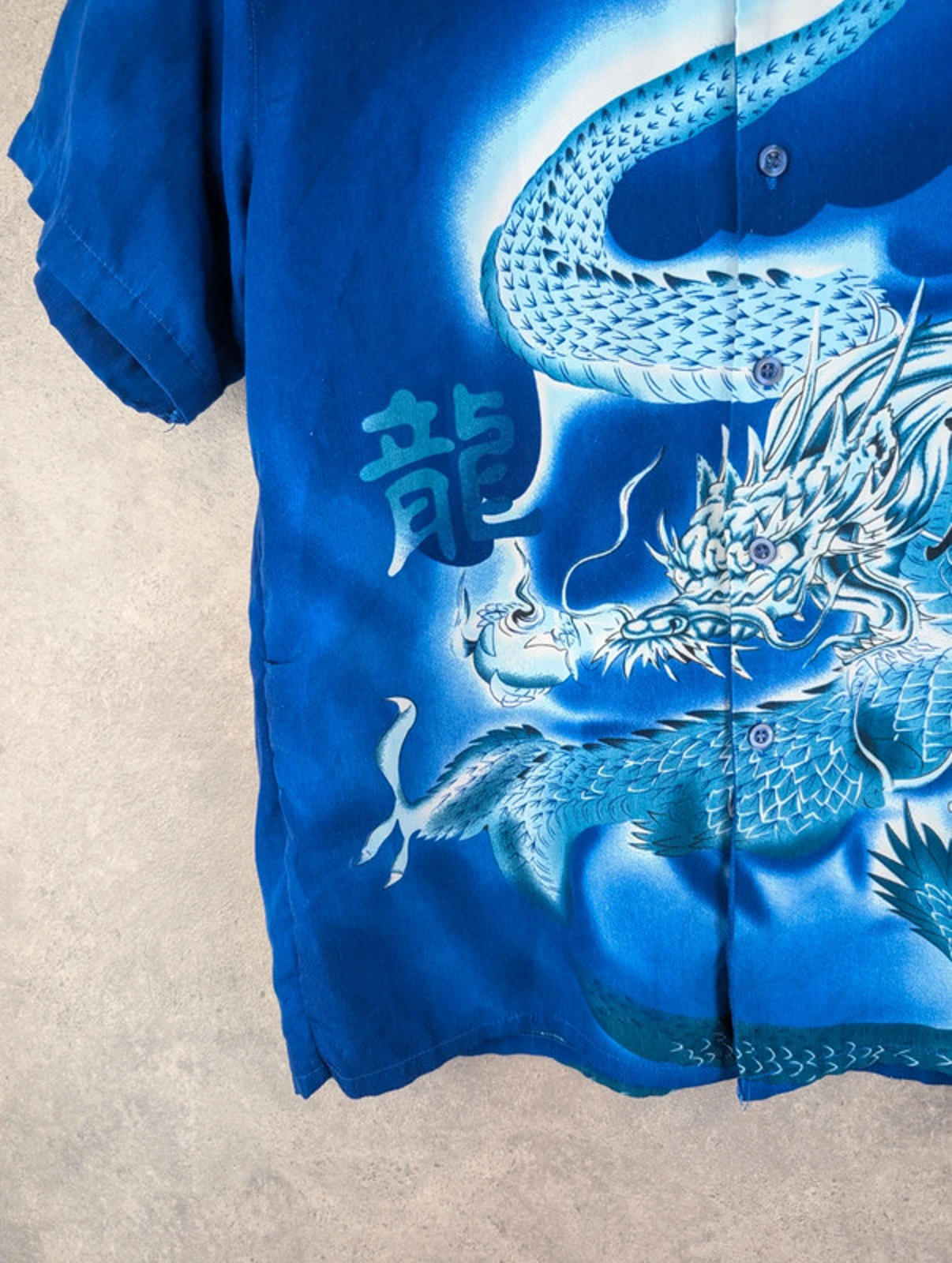 Snow Dragon Shirt Mens M Medium Blue Y2K Dragon Print