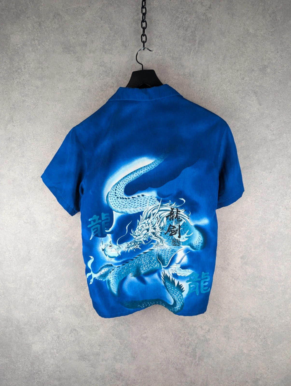 Decrease quantity for Snow Dragon Shirt Mens M Medium Blue Y2K Dragon Print