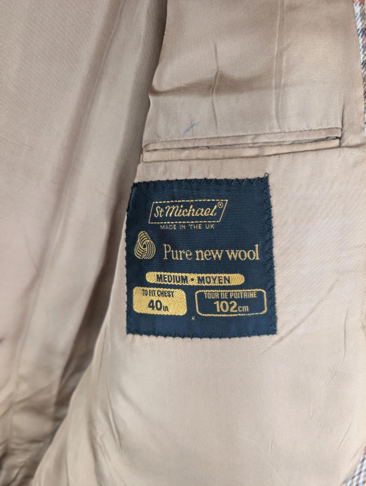St Michael Blazer Mens Medium M Checked Vintage Jacket 40 Regular