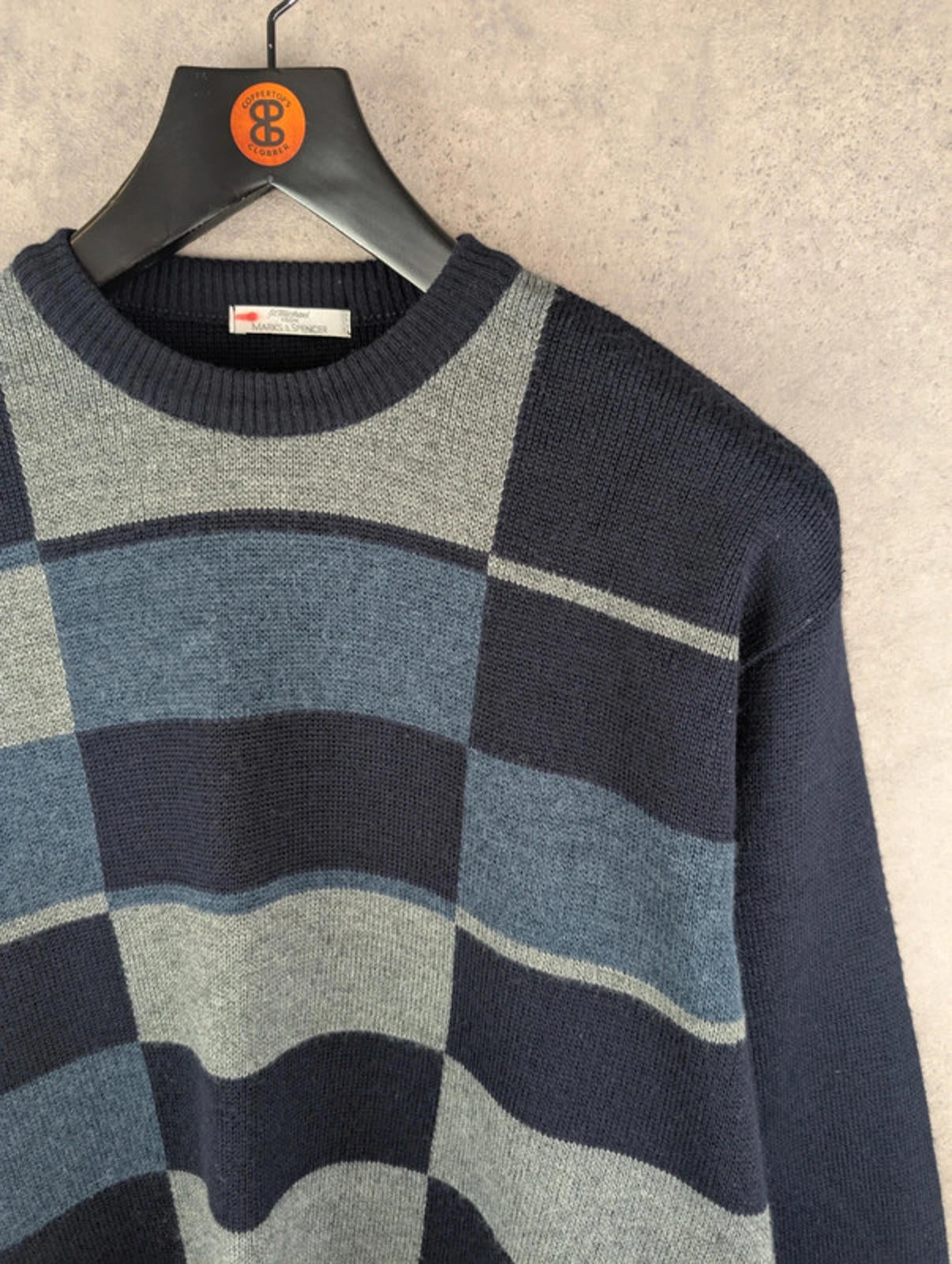 St Michael Jumper Mens M Medium Navy Vintage 90s Wool